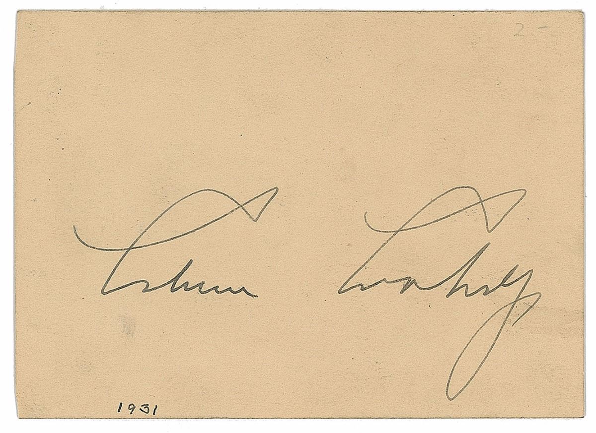 Ink signature, “Calvin Coolidge,” on a beige 3.5 x 2.5 clipped card bearing a collector’s date notation to bottom edge, “1931.” In fine condition, with trivial soiling (touching the last letter of the surname) and mounting remnants to reverse.
