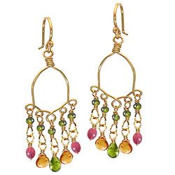 Metal: RoseGoldHammered half-round hoop with pink tourmaline, citrine, and peridot, about 2" long.Available in either 14K gold-filled, rose gold-filled, or sterling silver. All jewelry is entirely handmade in our studio in New York.