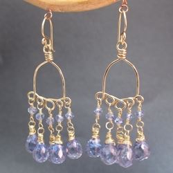 Metal: Gold Hammered drops with blue sapphire and blue quartz, about 1-1/2" long. Available in either 14K gold-filled, rose gold-filled, or sterling silver. All jewelry is entirely handmade in our studio in New York.