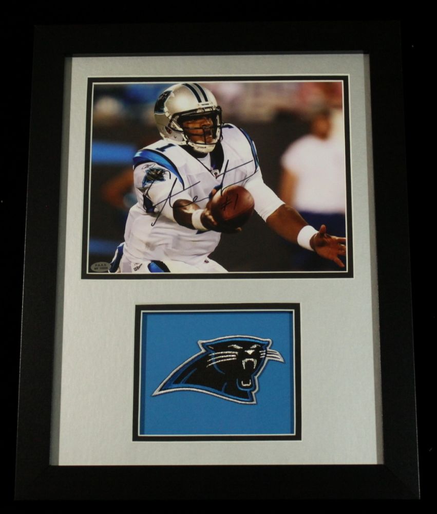 Hand-signed in black felt-tip pen by Cam Newton. Custom framed to 14x18 in size. Autograph includes a Professional Autograph Authentication Services (PAAS) hologram and matching COA for authenticity purposes.
