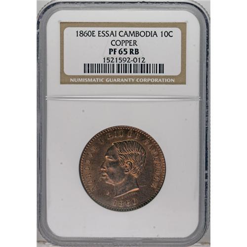 <B>Norodom I Essai 10 Centimes 1860E, </B></I>KM-X3, Proof 65 RB NGC, very flashy and attractive.<BR><BR><b>Shipping:</b> Coins & Currency (<a target="_blank" href="http://www.heritageauctions.com/common/shipping.php">view shipping information</a>)