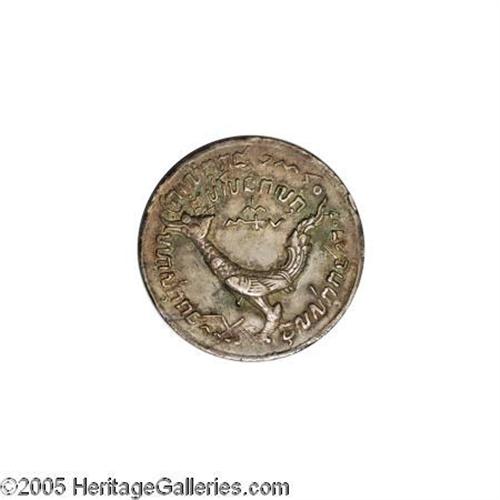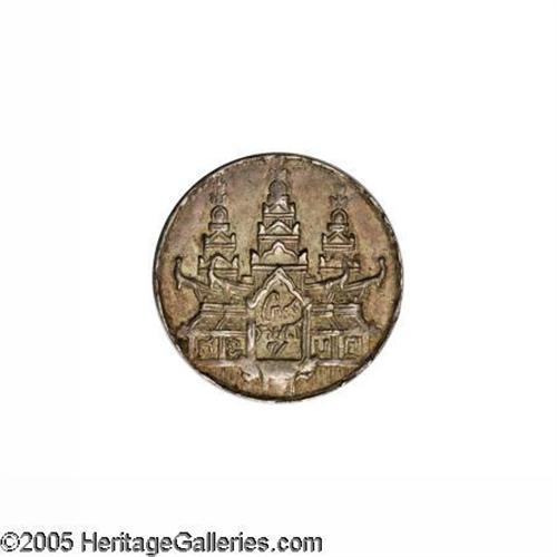 <B>Norodom II Tical CS1208 (1847), </B></I>KM37, large thin planchet, toned XF, much nicer than usually encountered.