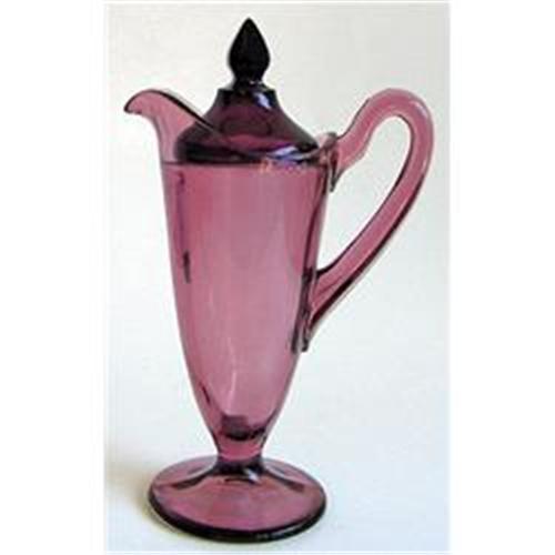 This superb amethyst Elegant Depression glass covered syrup pitcher was produced by the Cambridge Glass Co, circa 1930s, is shown on page 261 in Florence: Kitchen Glassware of the Depression Years; Sixth Edition. Measures 7? or 8 1/4? tall including its lid x 3? across the base. Very rare to find in amethyst this Elegant Depression glass syrup pitcher is in excellent condition.