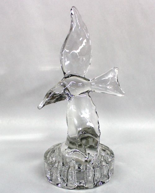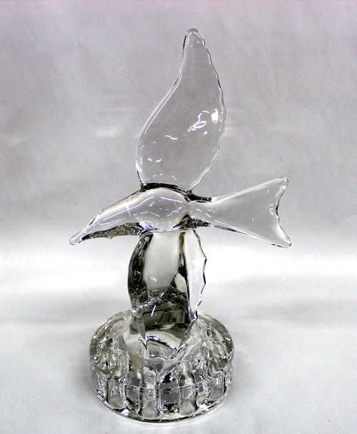 Cambridge Crystal Seafull Flower Frog. There are 9 hole openings for flowers in the base of this elegant crystal piece. It measures 9.5''H x 6''W.