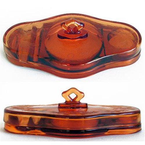 Produced by the Cambridge Glass Co. of Cambridge, OH, during the 1920s or 1930s - stamped Pat. Applied this Art Deco flower etched Elegant Depression glass make-up Compact or Compartment Dresser Jar features four compartments for powder, puff, eyebrow pencil, lipstick and rouge in the base. Measuring 8 1/2 inches long, 4 3/4 inches wide and about 3 1/2 inches tall. Similar Cambridge make-up compacts are shown on pg 69 of Whitmeyer - Bedroom & Bathroom Glassware of the Depression Years. Both lid and base are in excellent condition.