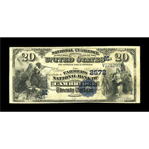<B>Cambridge, IL</B></I> - $20 1882 Value Back Fr. 581 <B>The Farmers NB</B></I> Ch. # (M)2572<BR>This ex-Lynn Shaw collection note grades <B>Very Fine+</B></I> and is a scarce type and denomination from this Henry County bank. A small tear at the top doesn't distract.<BR><I>From The Lincoln Collection</B></I><BR><BR><b>Shipping:</b> Coins & Currency (<a target="_blank" href="http://www.heritageauctions.com/common/shipping.php">view shipping information</a>)