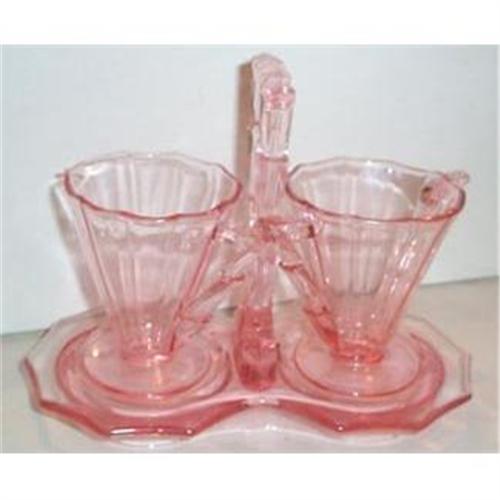 Cambridge Pink Footed Sugar, Creamer and Tray #2154246