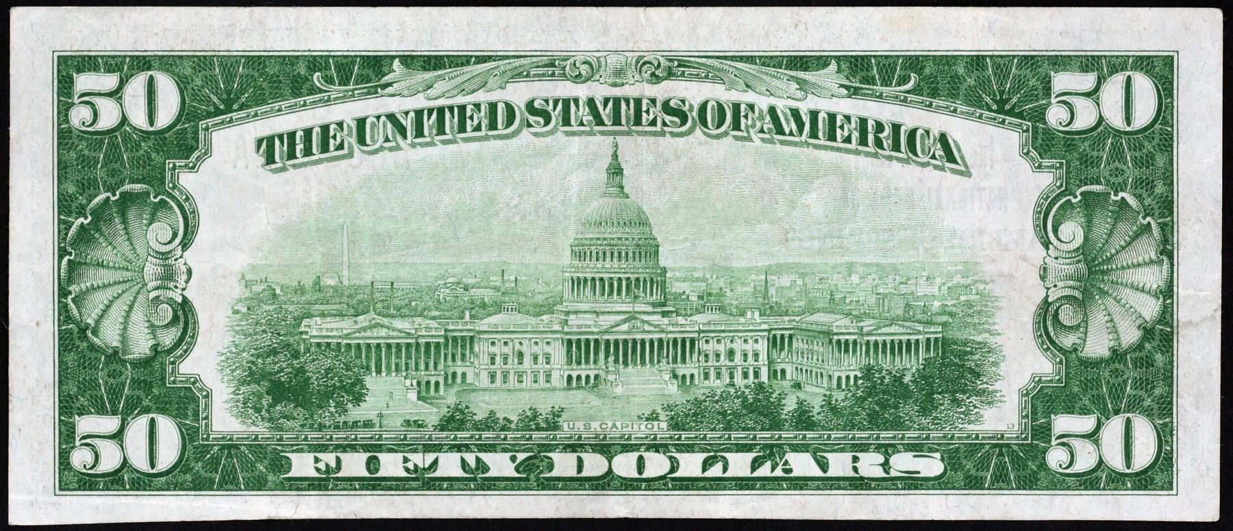 Description: This is a very pleasing small size $50 bill from this Crawford County national bank that bears the hyphenated second title.  Good eye appeal and margins highlight this charming note.