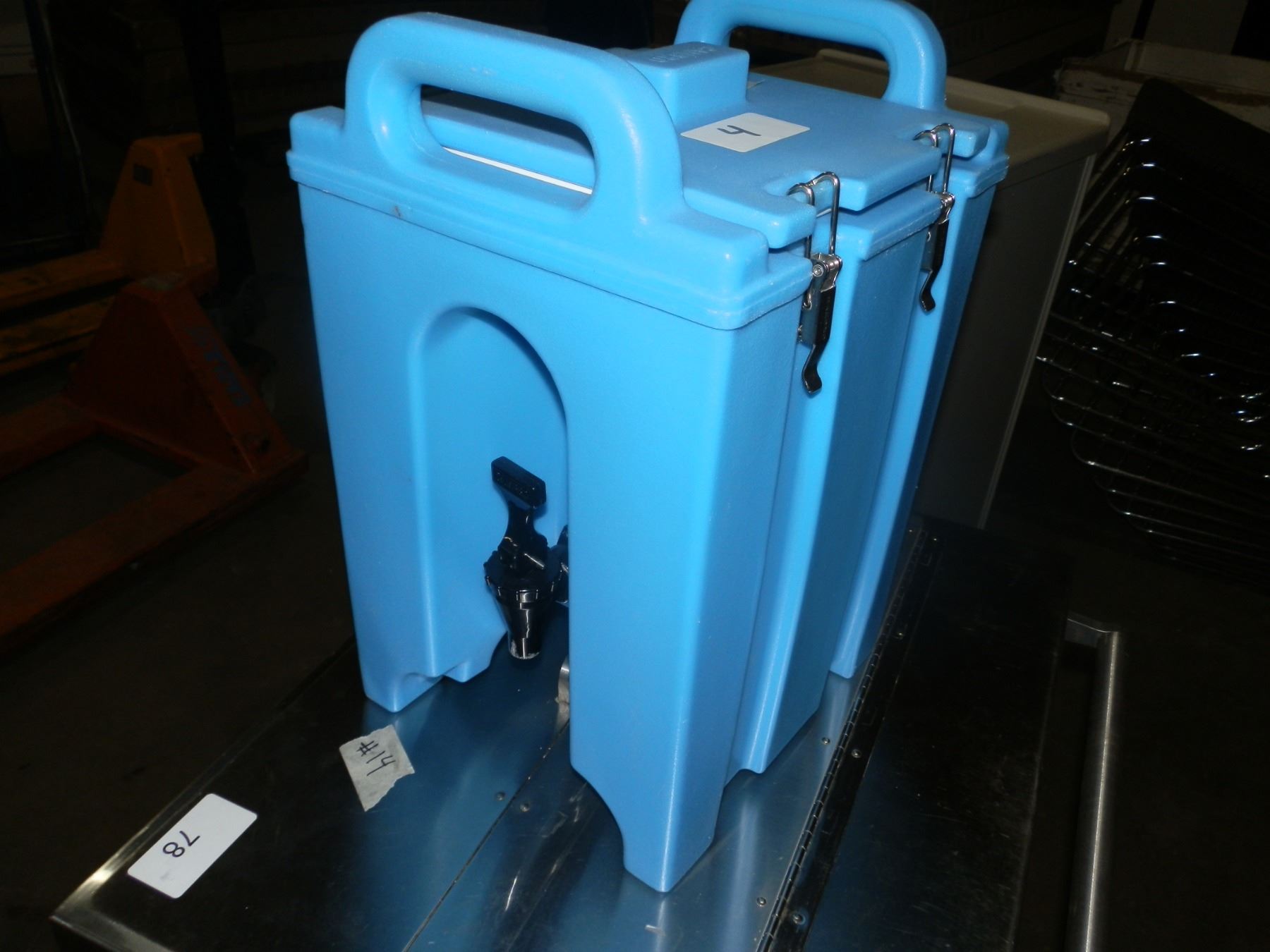 Light Blue in color Cambro.. keep those drinks cold or hot!!! Good condition...used