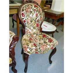 Two Pieces, Victorian Style Camel-back Sofa and Side Chair, Tufted Floral Upholstery ( Both Pieces in Good Condition, Showing Some Nicks and Scratches to the Wood Frame, Structurally Sound ).