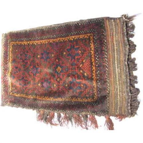 Rich colours. Heavy. It appears to be hand tied. Braided loops to fasten at mouth of bag. I have inserted a box into the opening to show it.