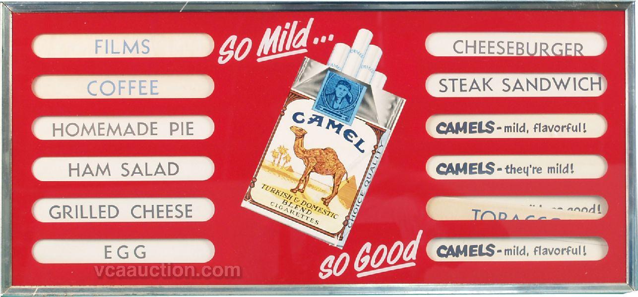 Camel Cigarettes Advertisement Soda Fountain Glass Menu Board, w/ extra menu choices - 28" x 13"