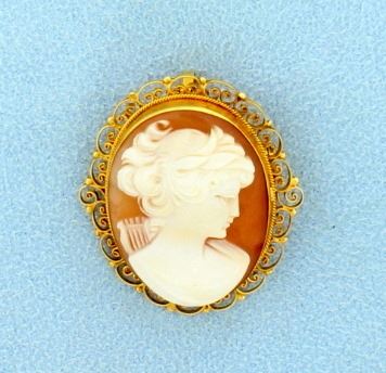 In 18K yellow gold the bail flips in to be worn as a pin, the cameo is 1 1/4 inch long. 6.3g