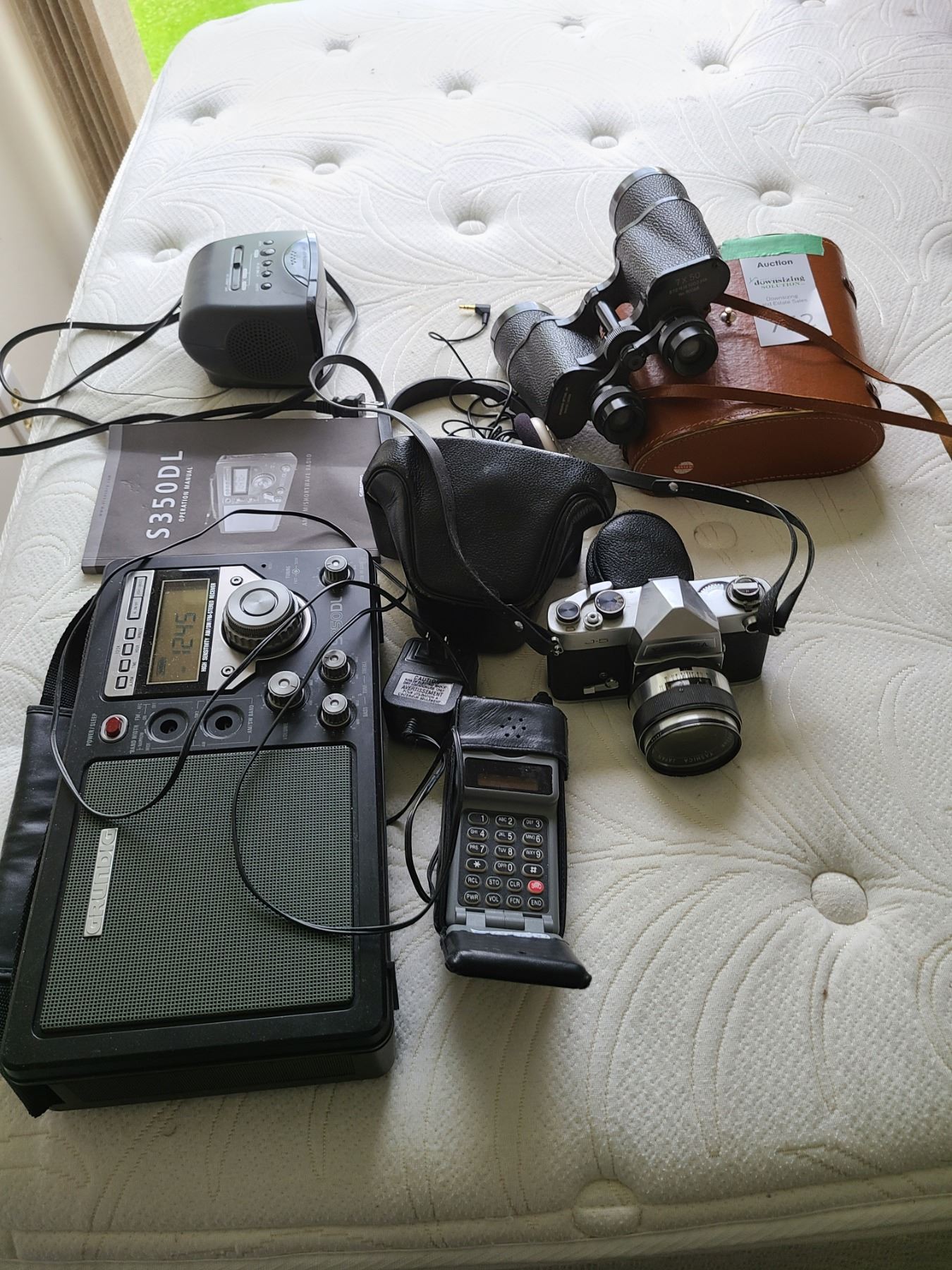 Yashica Camera, Sony alarm clock. Grundig S350DL radio. Binocular Research Optical Co. Coated Lenses Jenson head phones & more. Bring packing material & pickup at 9 am