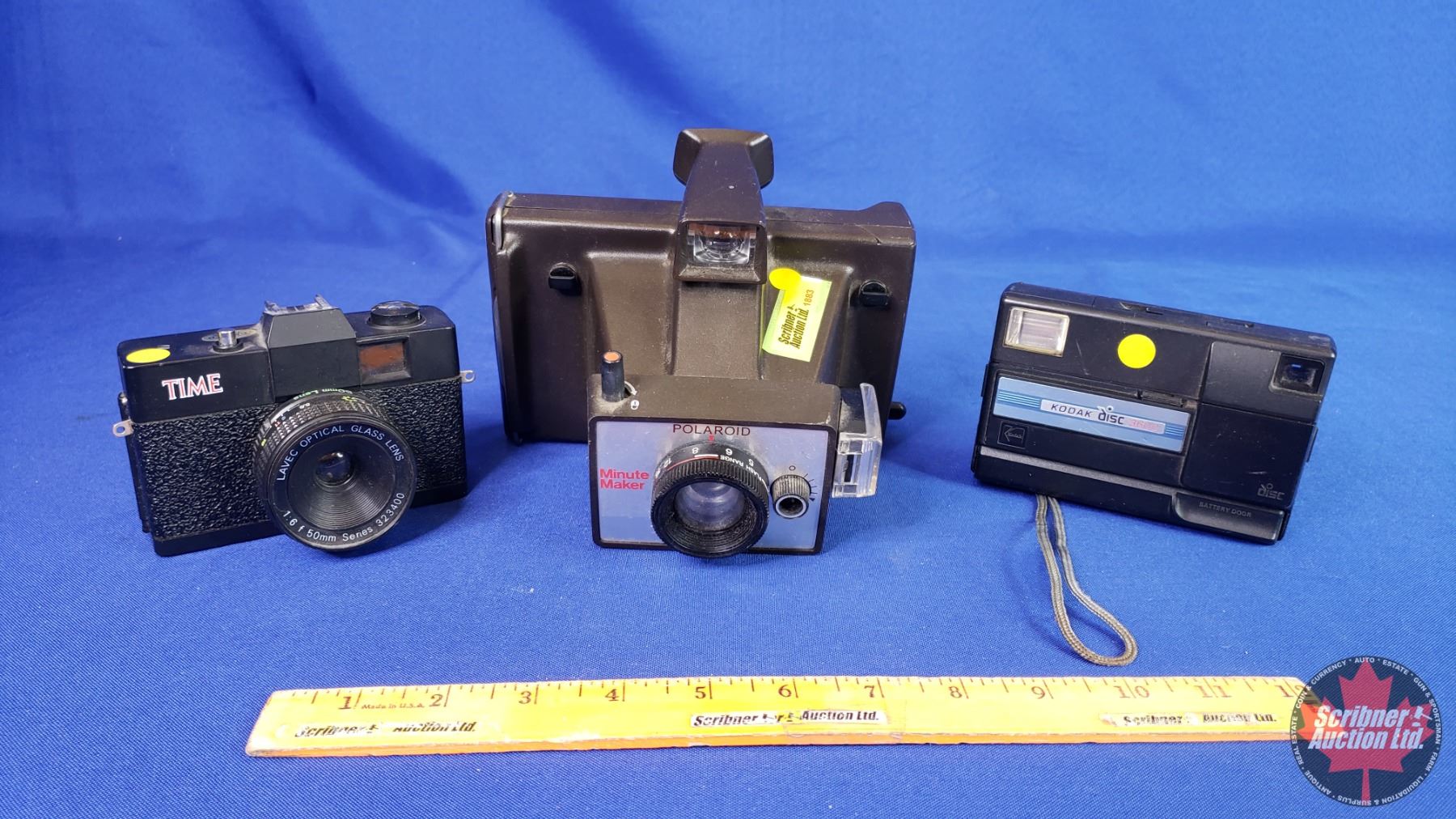 Camera Trio : Polaroid ; Time ; Kodak (Largest Measures: 5"H x 6-1/2"W x 6"D) (SEE PICS!)