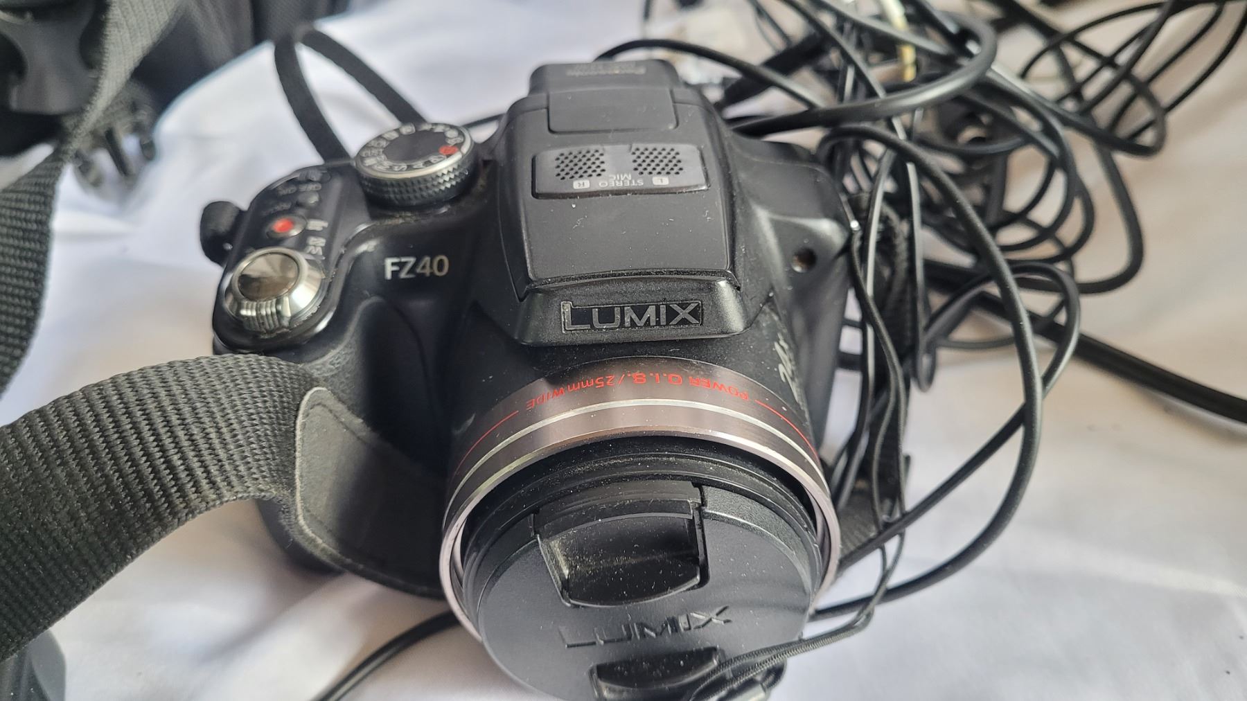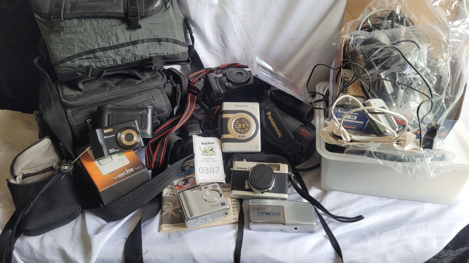 Lumix FZ40, Olympus Infinity Zoom200, Norcent, Fujifilm FinePix F410, Konica, Scan card, Panasonic Palmcordr IQ PV-IQ405. Plus camera bags and accessories. Pickup at 9 am