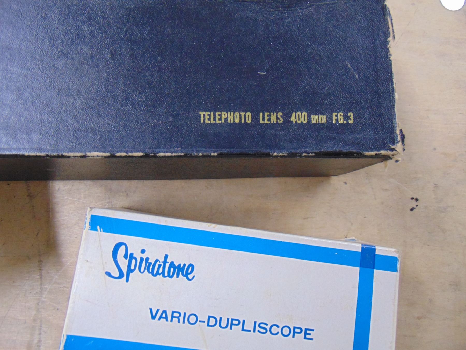 2 items; Spiratone vario duplicope; telephoto lens, 400mm, model F6-3