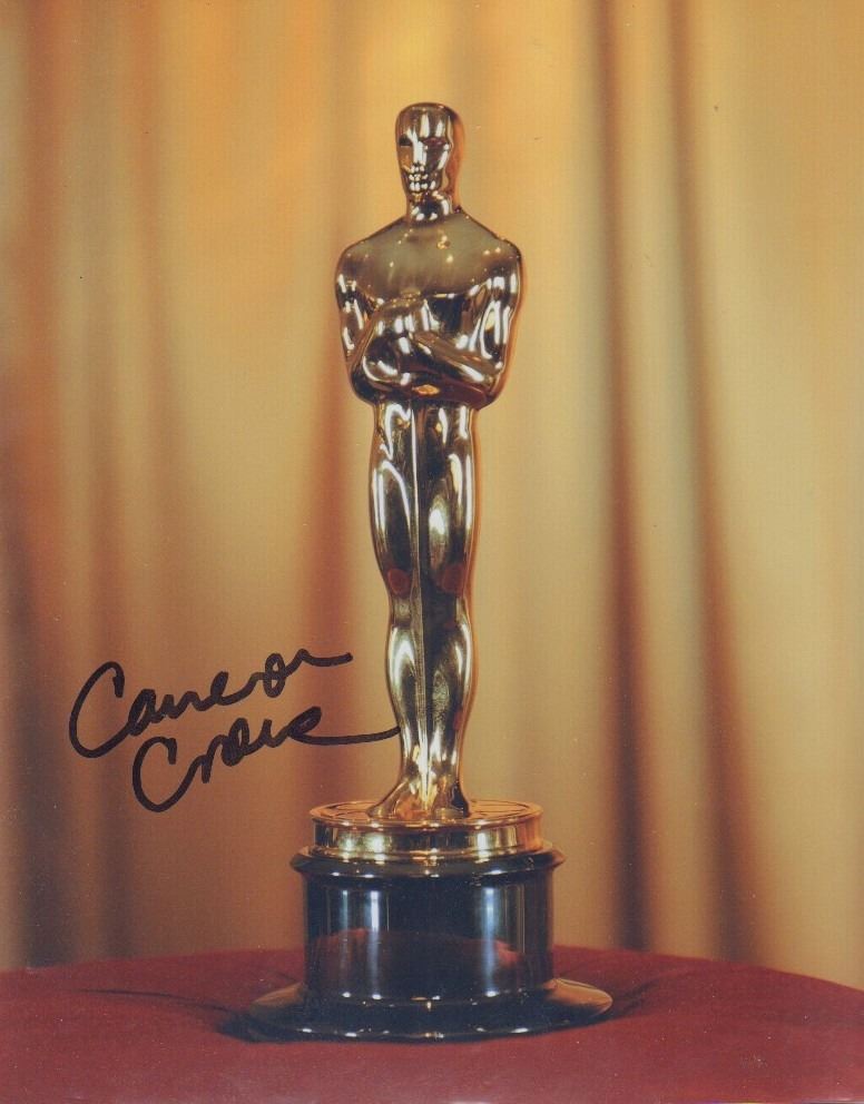 A 8x10 photo of an Oscar signed by Cameron Crowe with COA.