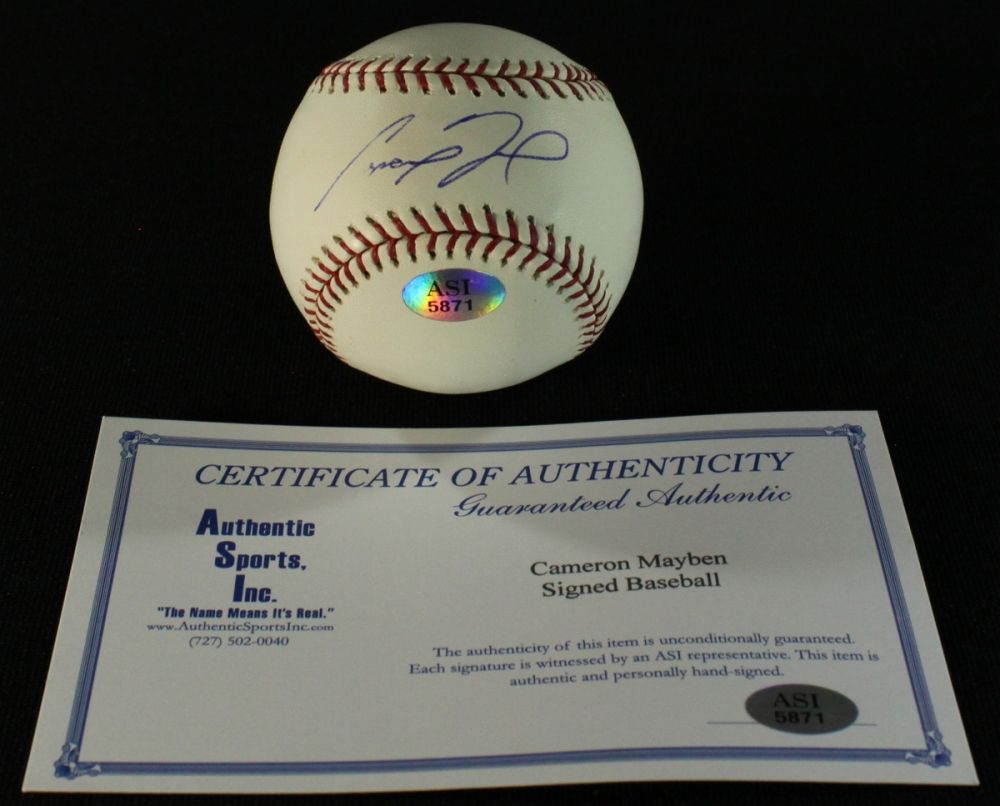Official Major League Baseball hand-signed in blue ball-point pen by Cameron Maybin (Padres). Autograph includes an Authentic Sports Inc. (ASI) hologram and matching COA for authenticity purposes.
