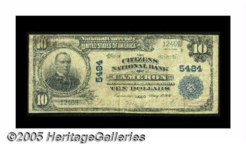 <B>Cameron, TX</B></I> - $10 1902 Plain Back Fr. 633 <B>The Citizens NB</B></I> Ch. # 5484<BR>A scarcer central Texas bank in large size. <B>Very Good-Fine.</B></I>