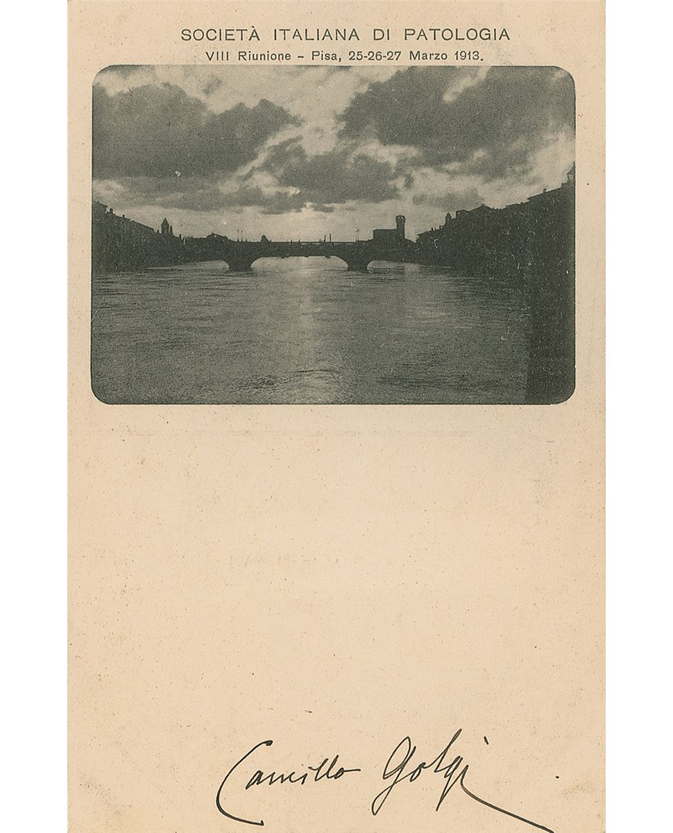 Italian physician, pathologist, and scientist (1843–1926) who won the Nobel Prize for Medicine in 1906. Vintage unmailed ‘Societa Italiana di Patologia’ postcard, 3.5 x 5.5, signed at the bottom in black ink. In very good to fine condition, with light scattered soiling, and diagonal impressions to each corner from previous display.