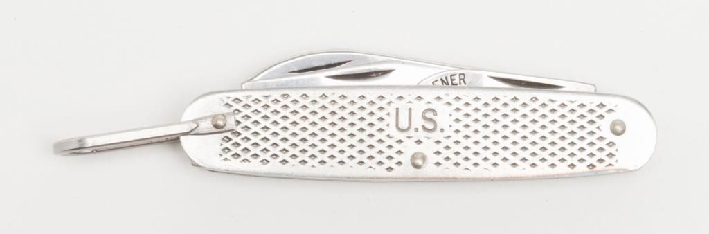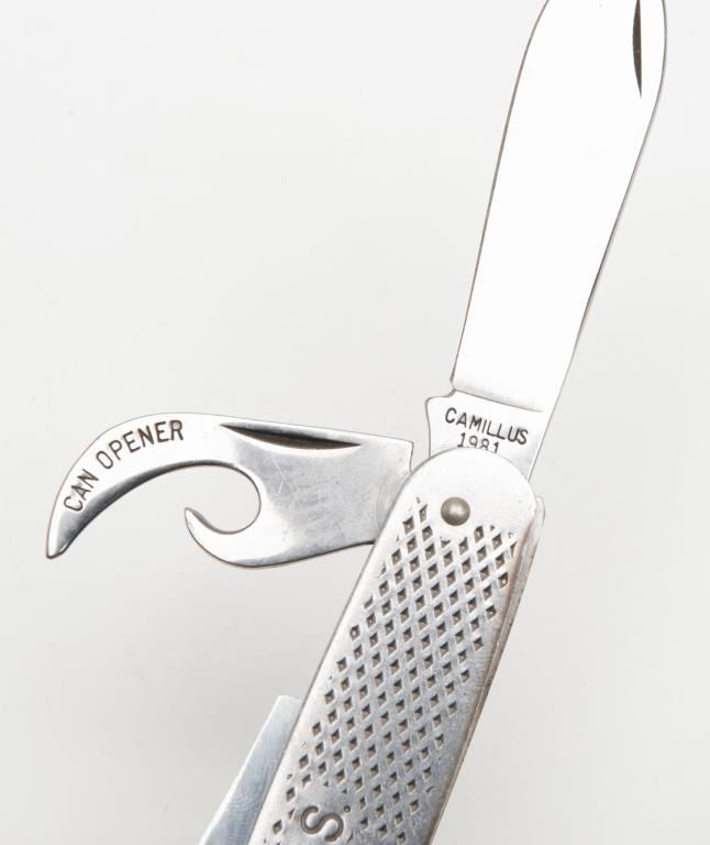 Camillus U.S. Steel Pocket knife dated 1981. The four blade U.S. marked pocket knife is in overall very good condition. Aside from some light scratches on the blade, the knife appears to have seen little use. (Exempt). Est.: $75-$150.