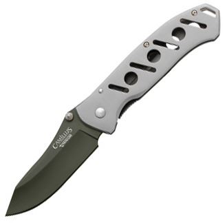 Wide Blade Linerlock - 4 1/4" closed. Carbonitride Titanium Japanese AUS-8 stainless hollow ground blade. Thumb stud. Ergonomic aluminum handles. Lanyard hole. Lifetime warranty
