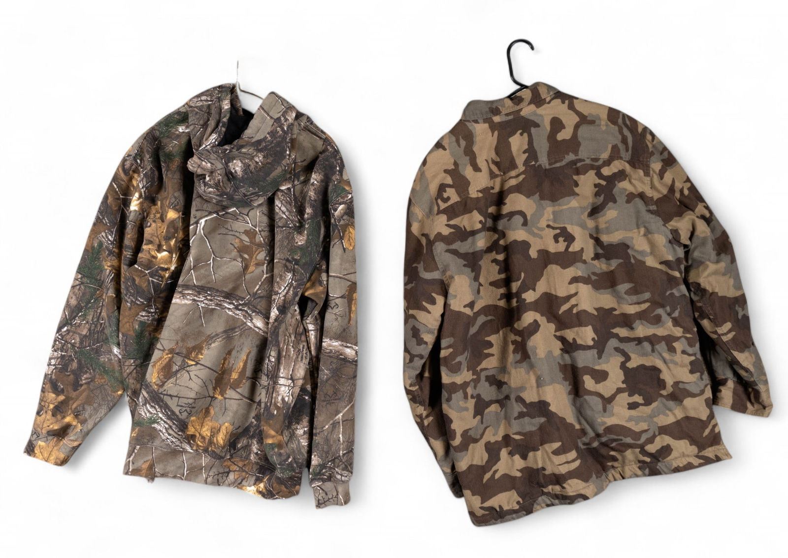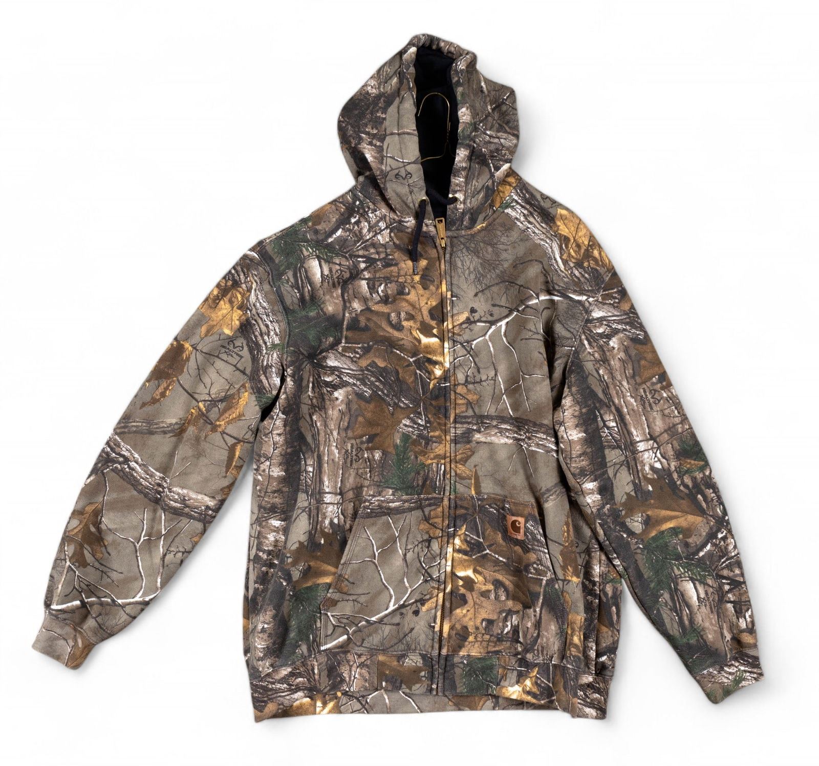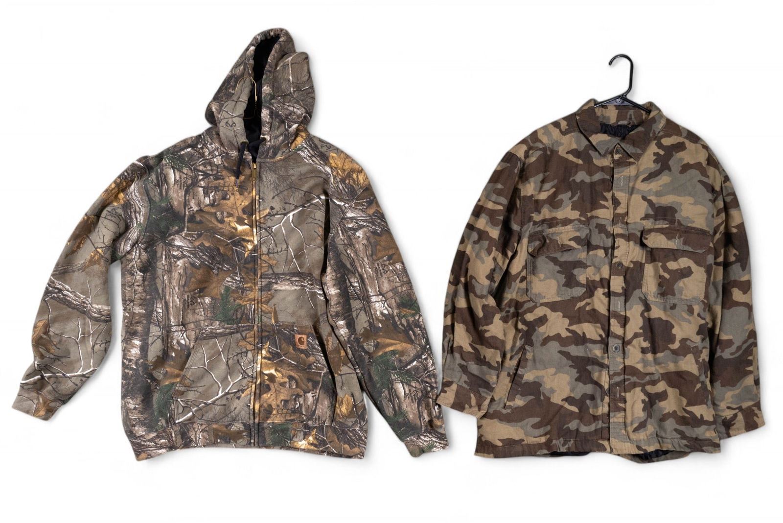 Mossy Oak feece lined zip up hooded jacket, Realtree light jacket, Realtree cargo pants, Carhart Realtree pattern zip up hoodie, and Basic Editions insulated flannel. Pants size L and jackets size XL.