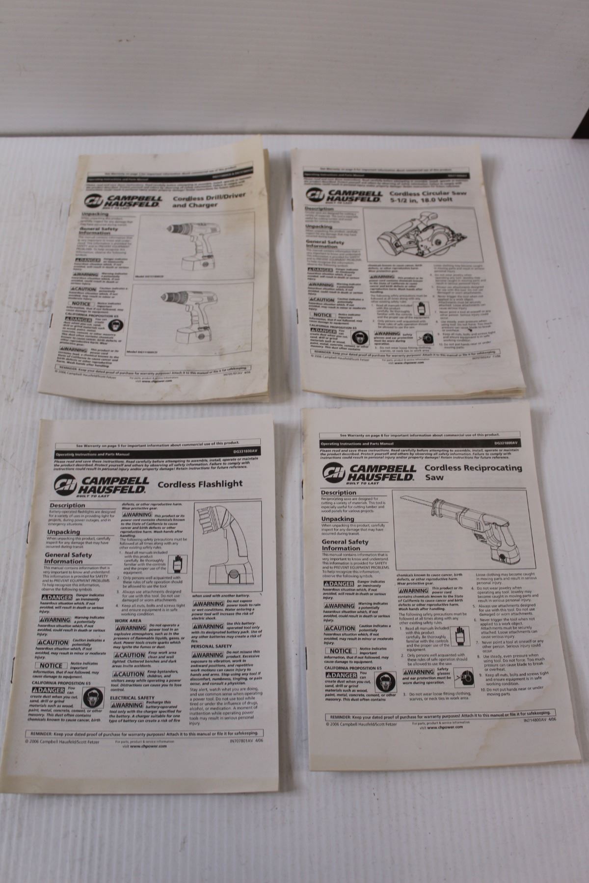 Campbell Hausfeld Cordless Flashlight, Drill/Driver, Circular Saw, Reciprocating Saw, Charger, (2) B