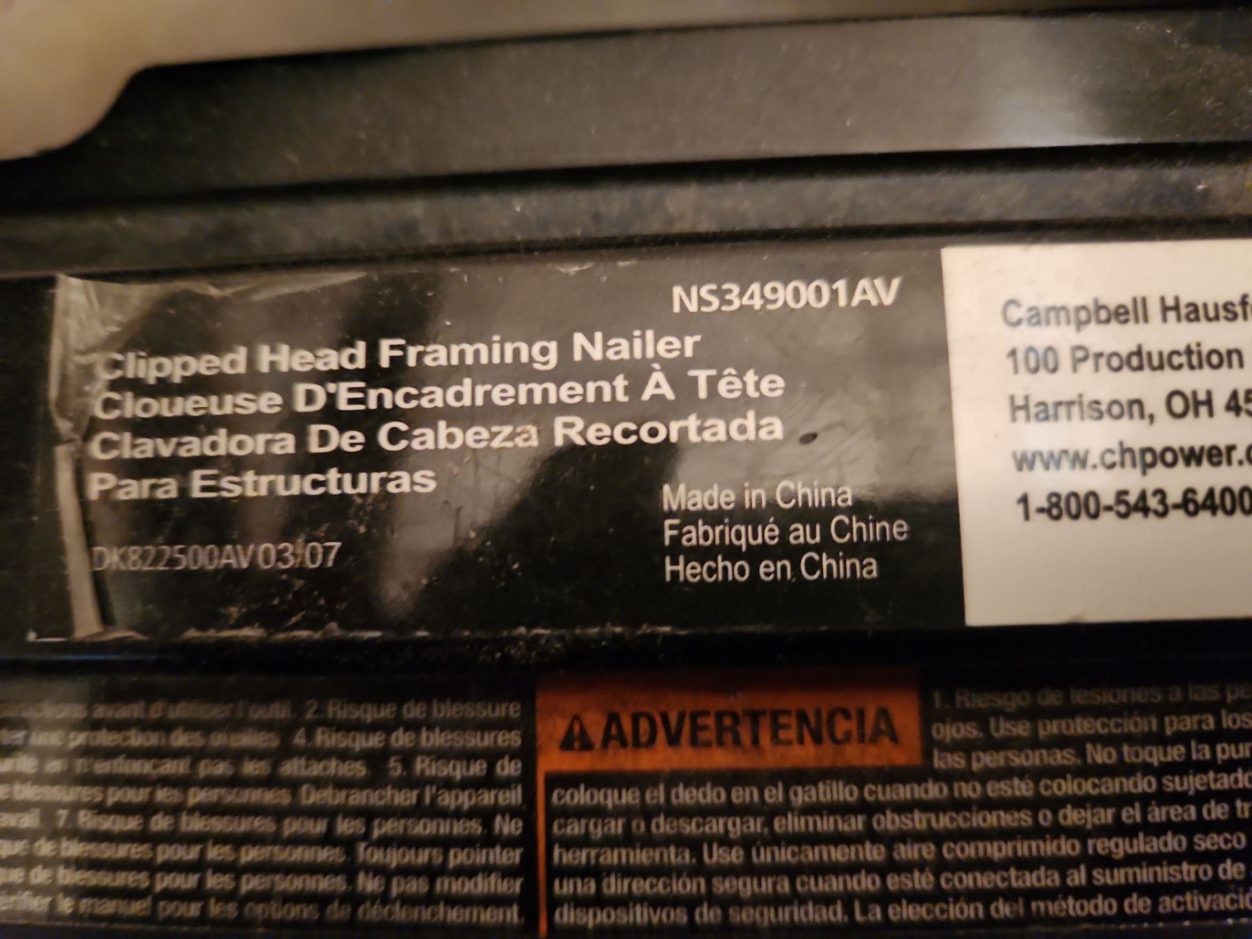 Campbell Hausfeld Model NS349001AV Clipped Head Framing Nailer