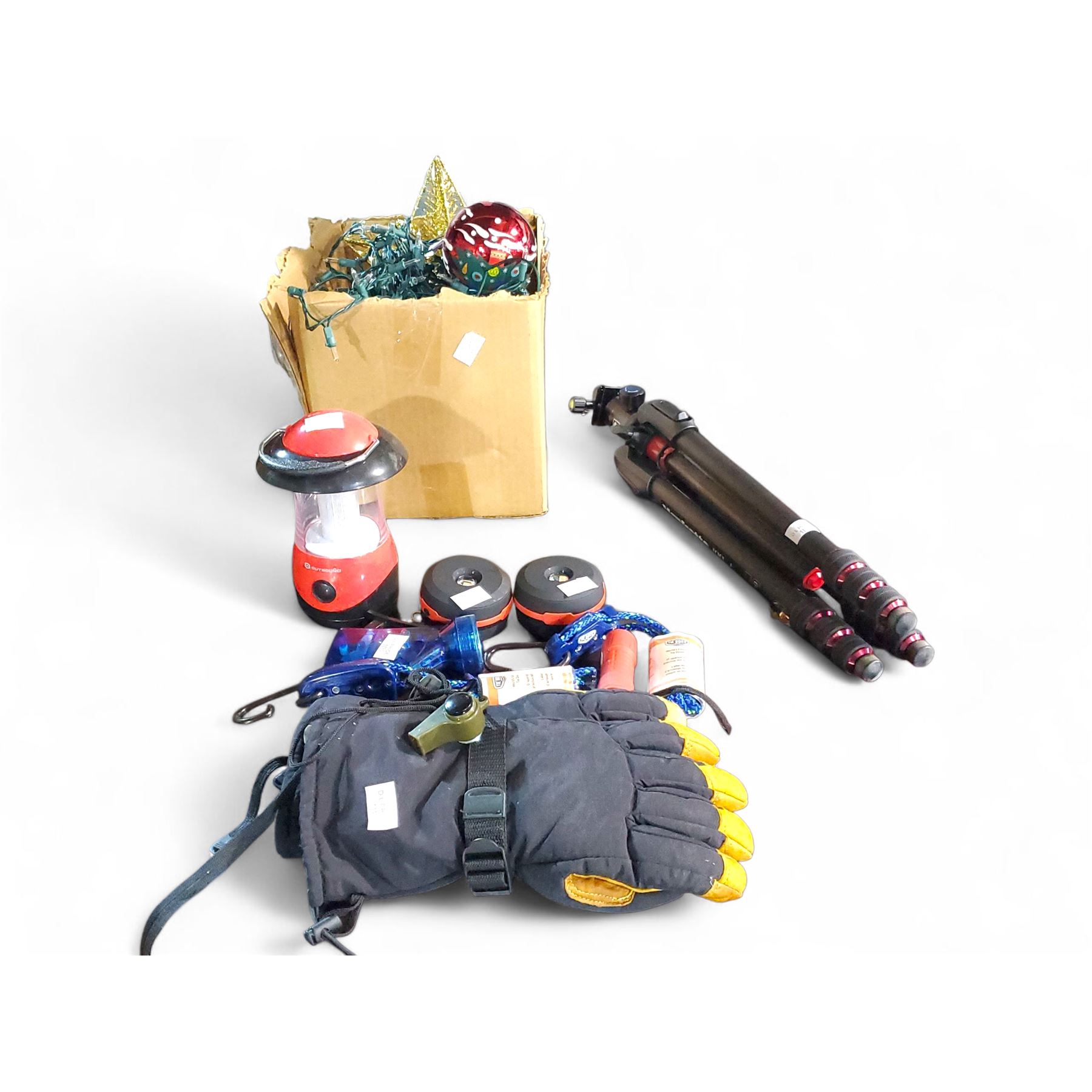 Camping Group Lot - includes a Portable LED Lamp/Gloves/Tie Boss Ropes & More