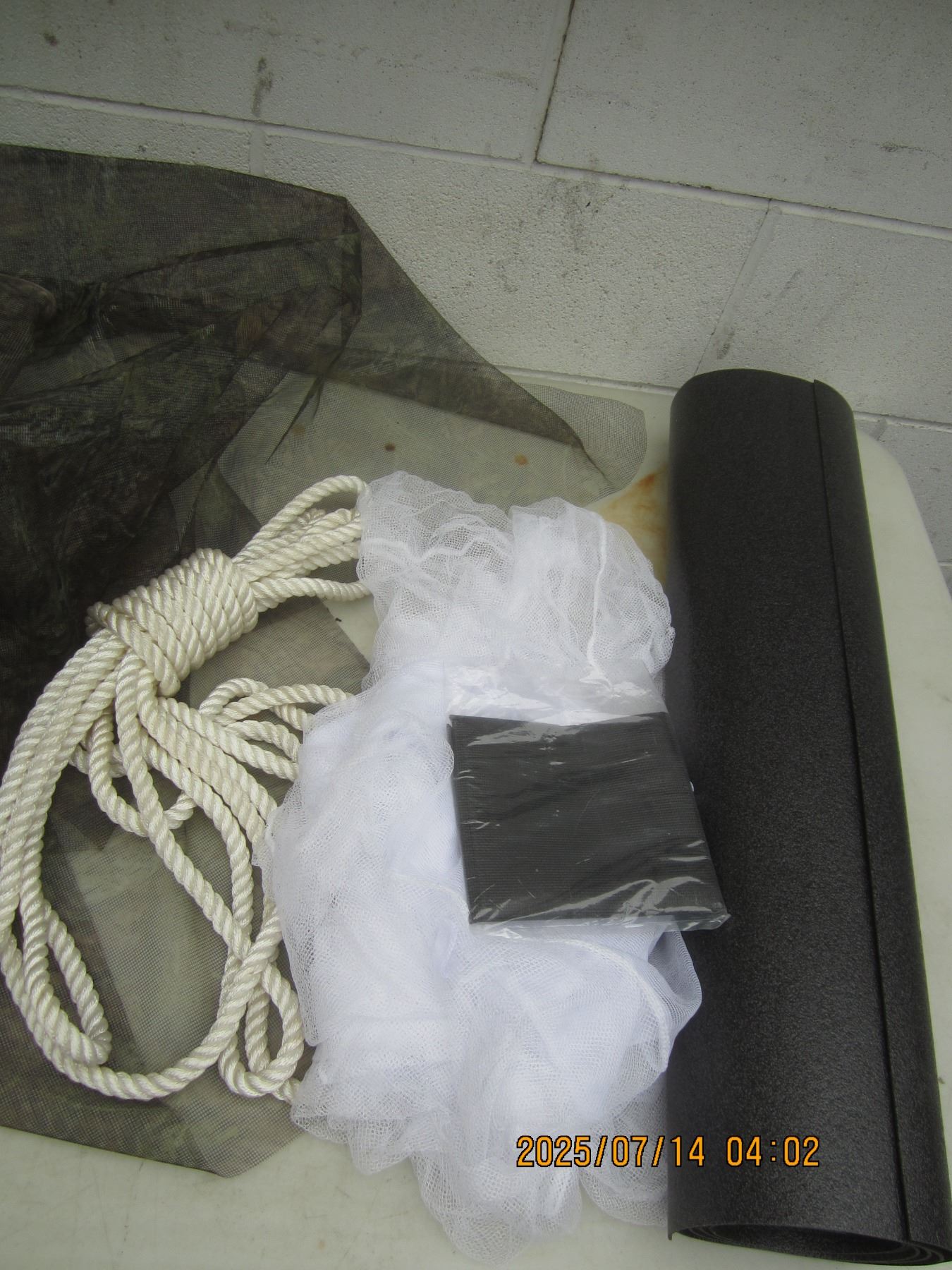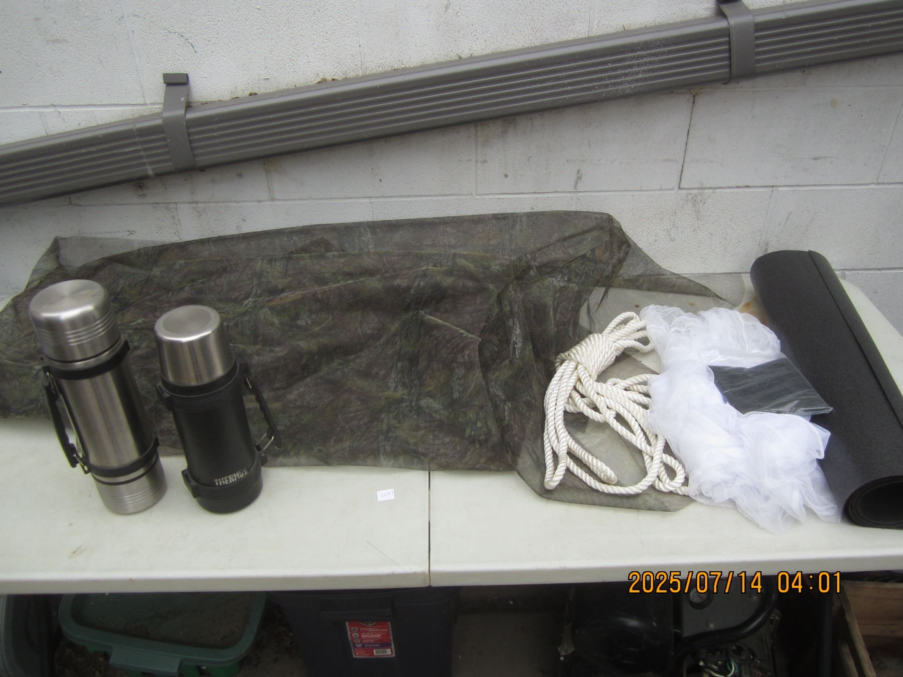 Camping Hunting Lot 2 Thermoses Camo Netting Rope and Bed Roll