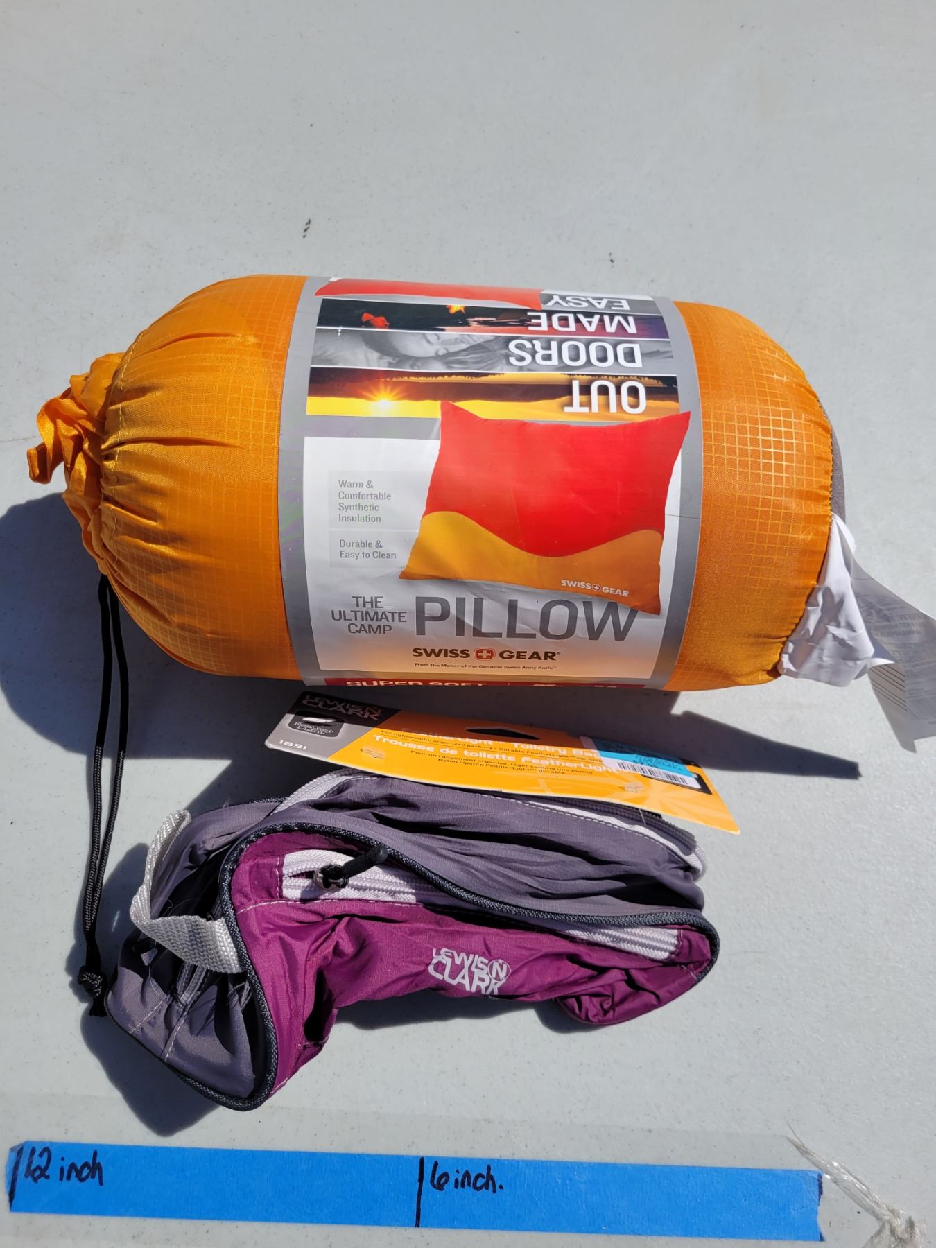 Camping Lot - Swiss Gear Pillow; FeatherLight Toiletry Bag