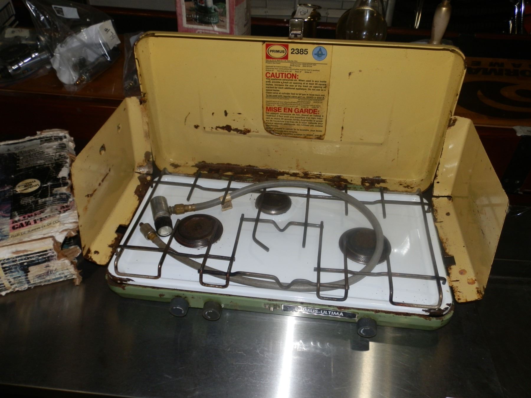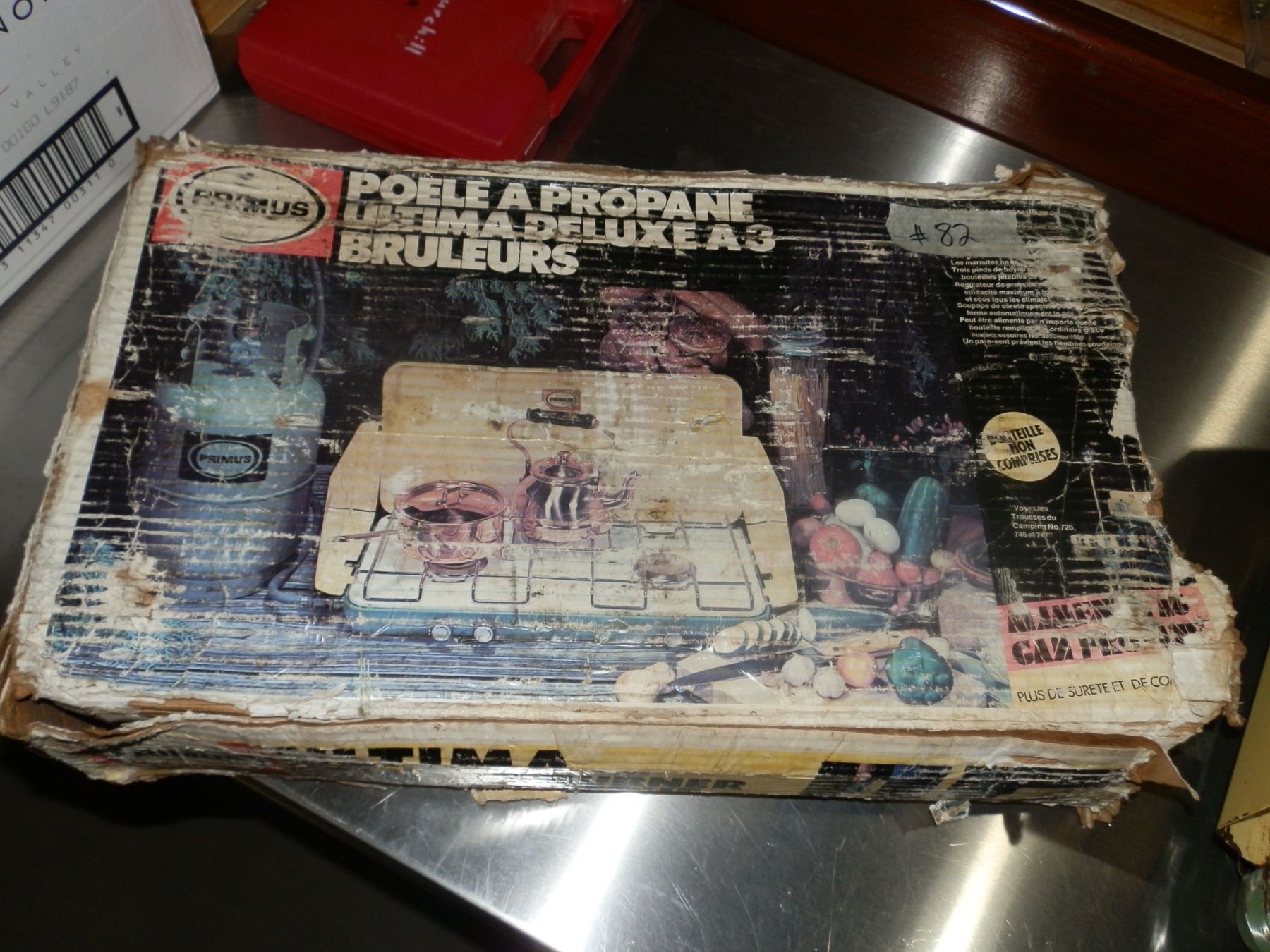 Primus Camping stove with propane tank... comes with original box... this old little camping stove has alot of life left in her...used