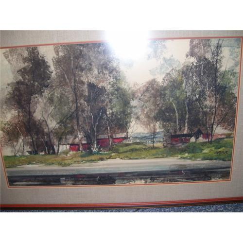 THIS THE "CAMPSITE" WATER COLOR ON PAPER BY JOHN E. DETORE. HE IS A NEW YORK ARTIST, AND THIS PAINTING IS CERTIFIED ON THE BACK. FRAME HAS A COUPLE OF SCRATCHES. IN GOOD CONDITION!!
