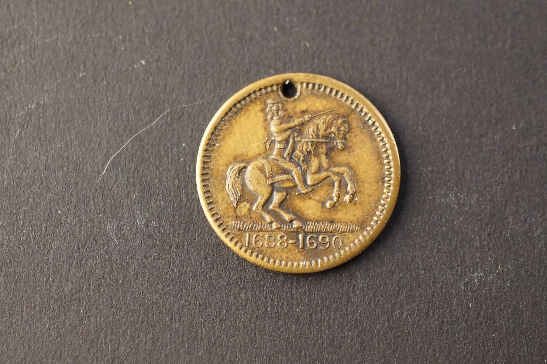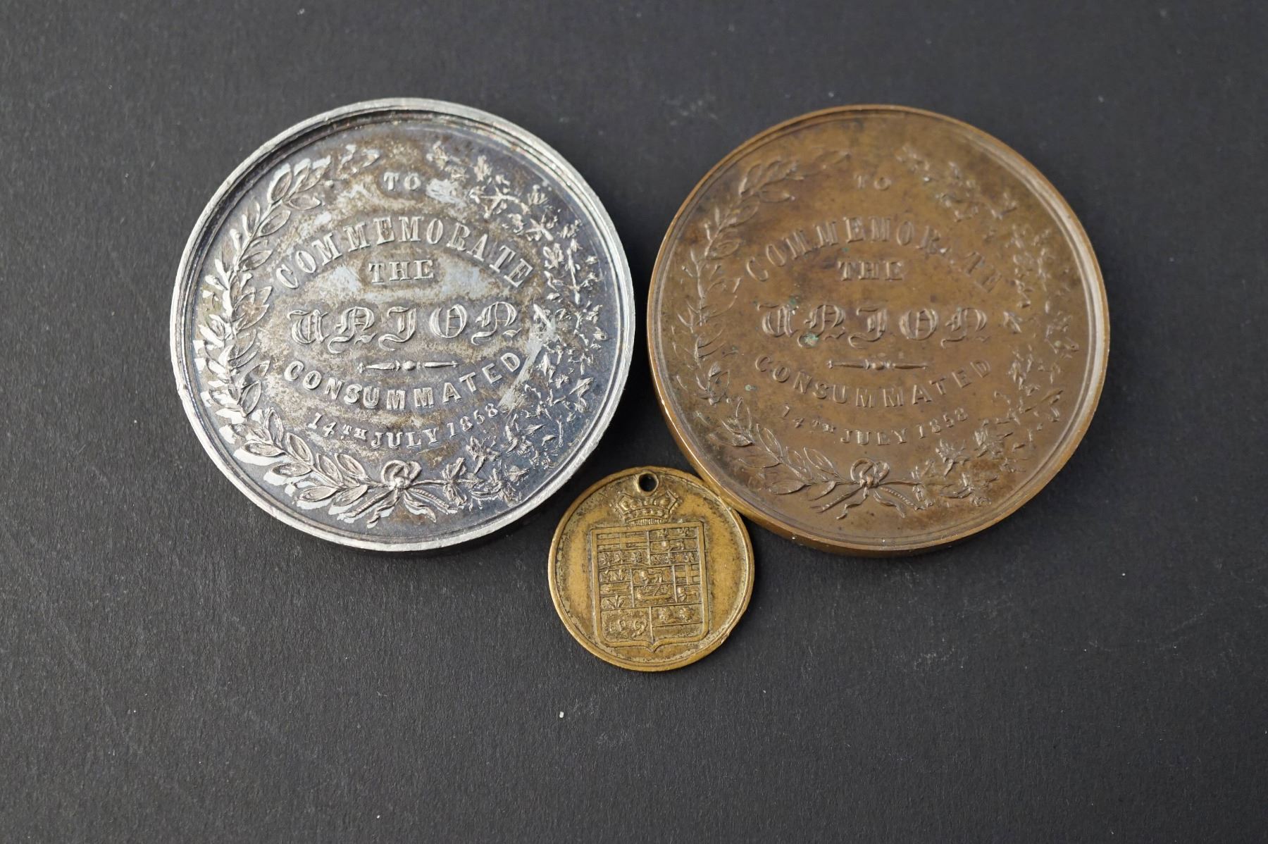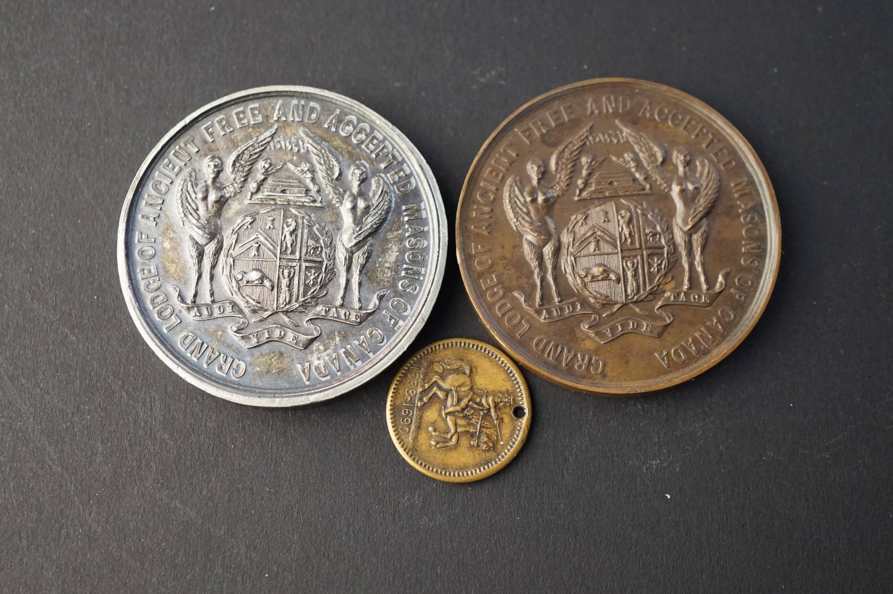 3 Pcs. Grad Lodge Masonic 3rd Convention Toronto. FDC AE-42, 35.6 and WM-42, 34.5 grs. & Lr-733a, EF, pierced, AE-19. Battle of Boyne w/Canada coat of arms by Pritchard and Andrews.
