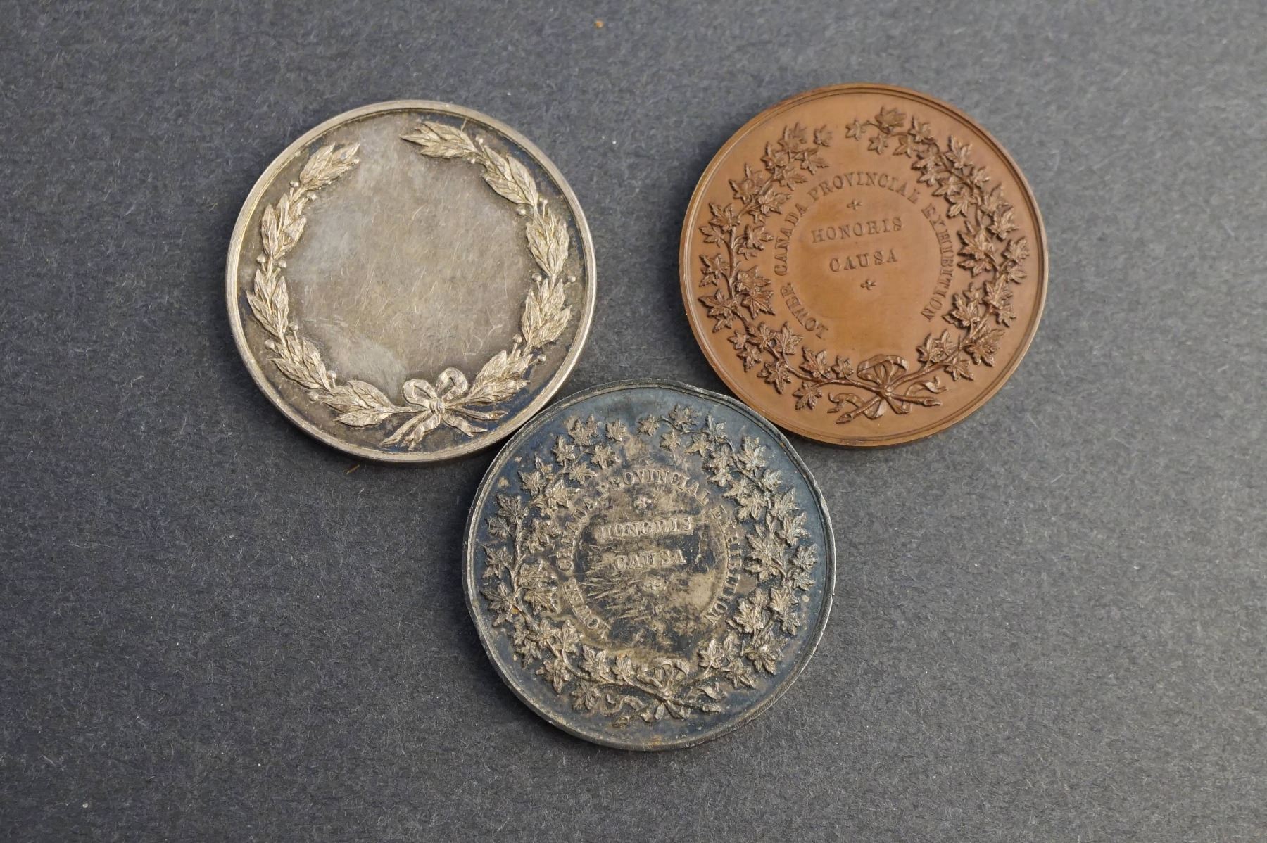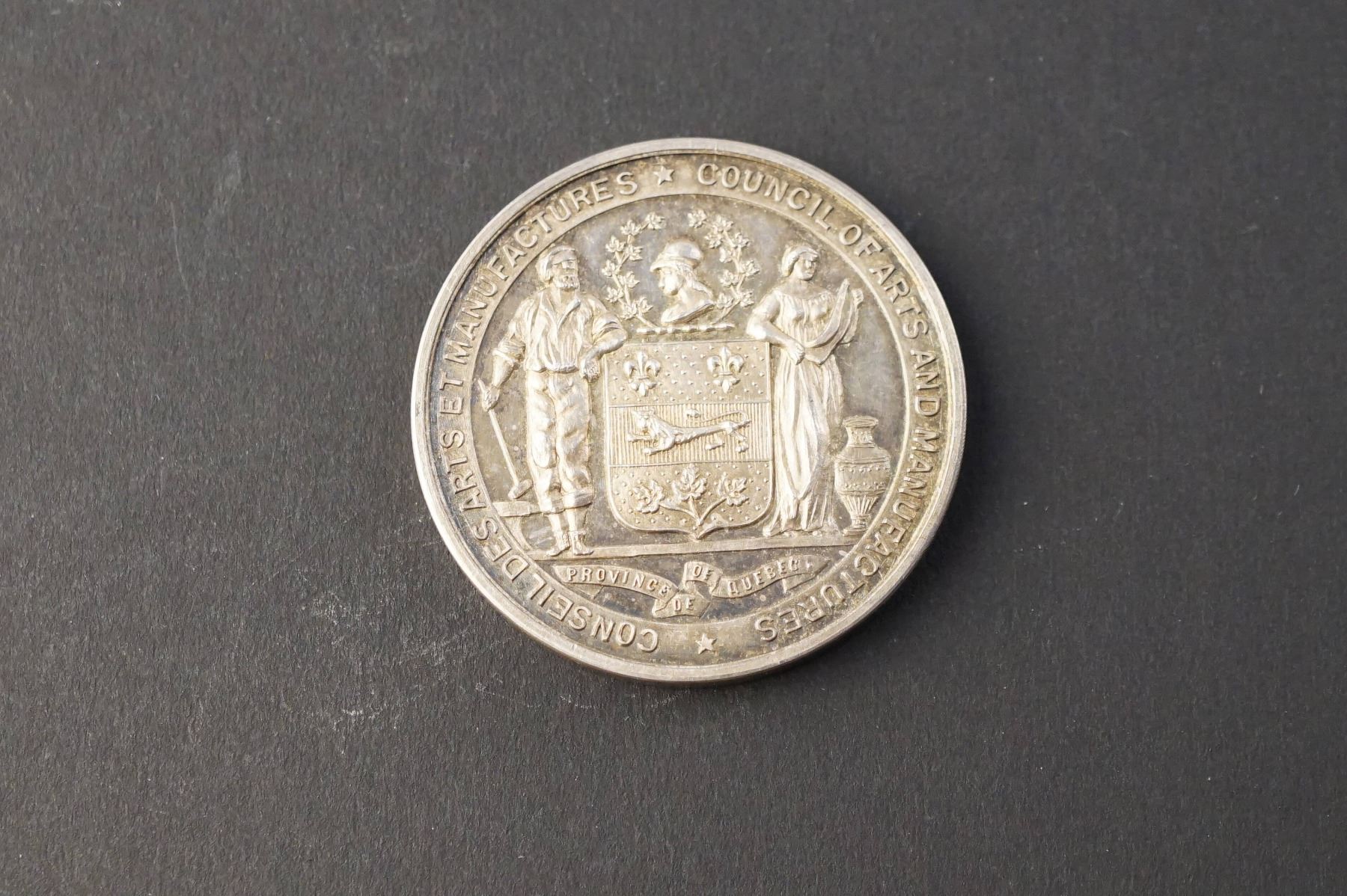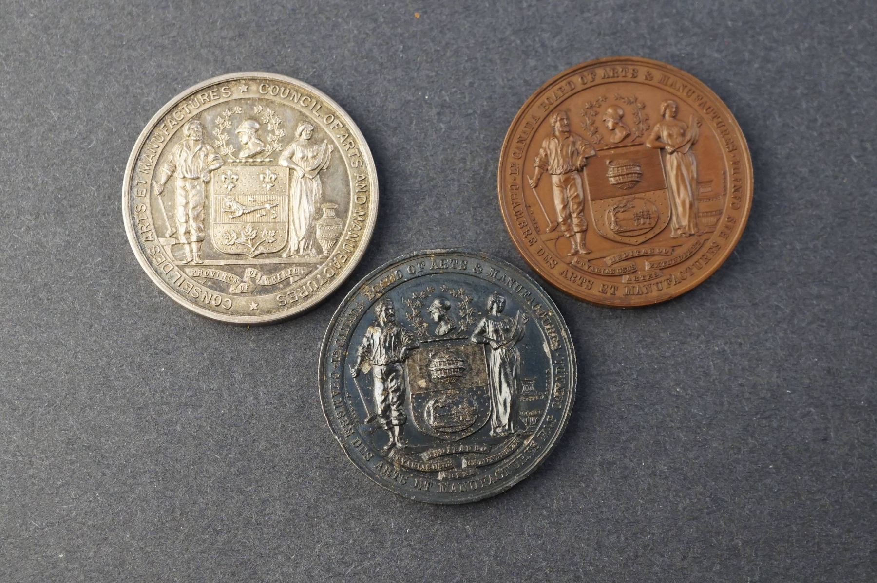 3 Pcs. Council of Arts and Manufactures w/Honoris Causa in wreath by J. S. Wyon. EF, AR-38, 32.5 grs. and FDC AE-38, 29.7 grs & 1872-1926 Council of Arts and Manufacturers w/Québec Coat of Arms and reverse w/wreath. FDC A-39, 36.4. Edge: Plain