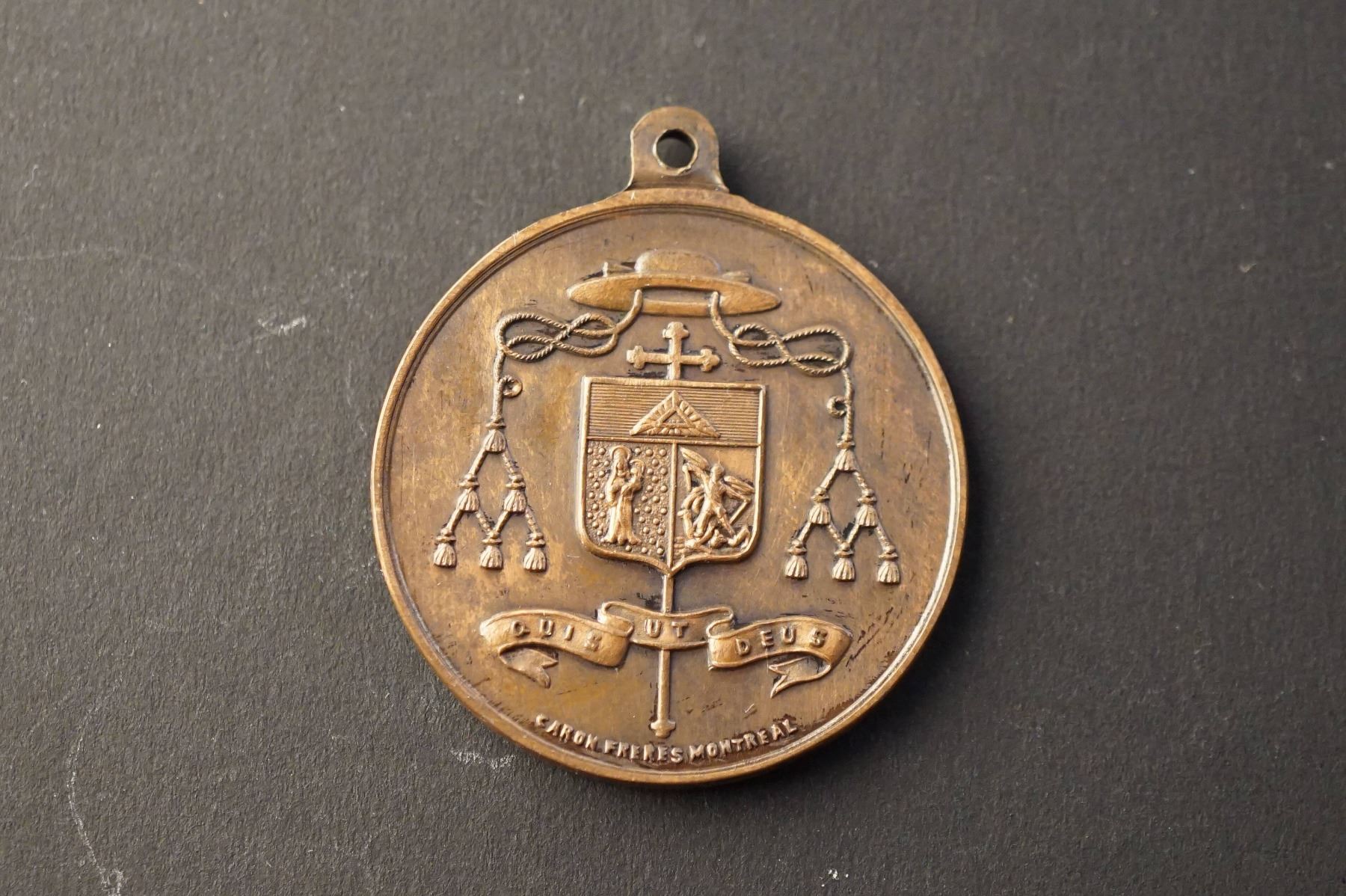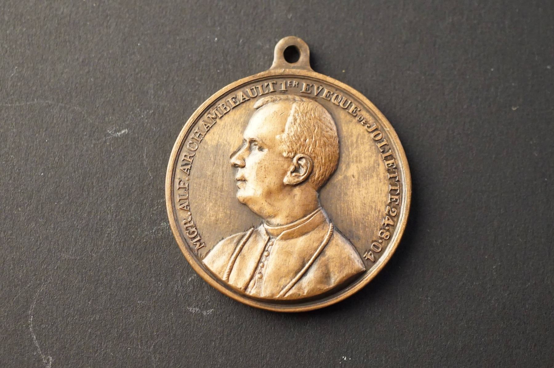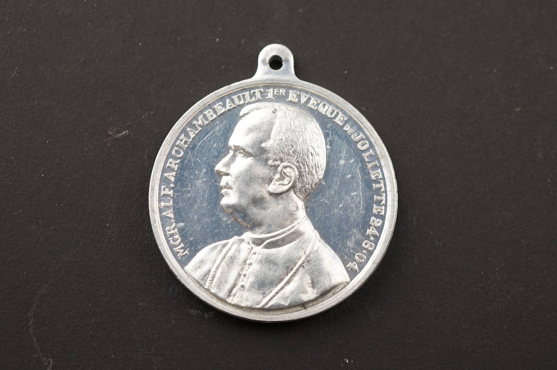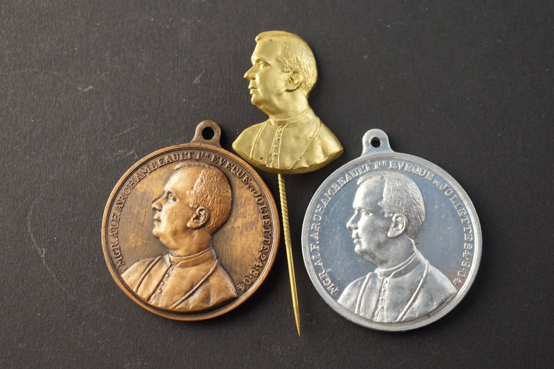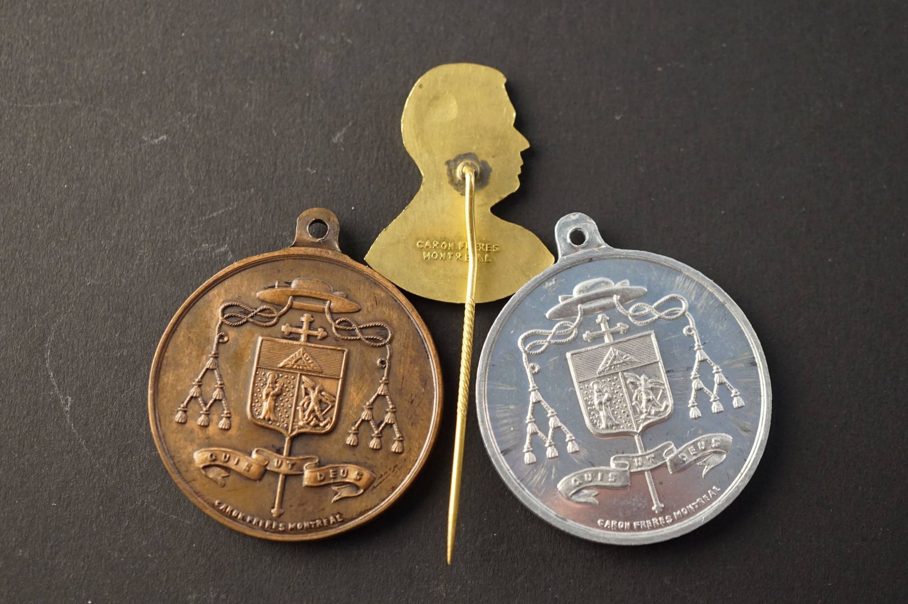 3 Pcs. Mgr. Archambault Bishop of Joliette. FDC AE-37, 26.9 grs and AL-37, 7.4 w/loops & Uniface stick pin, all by Caron Freres.