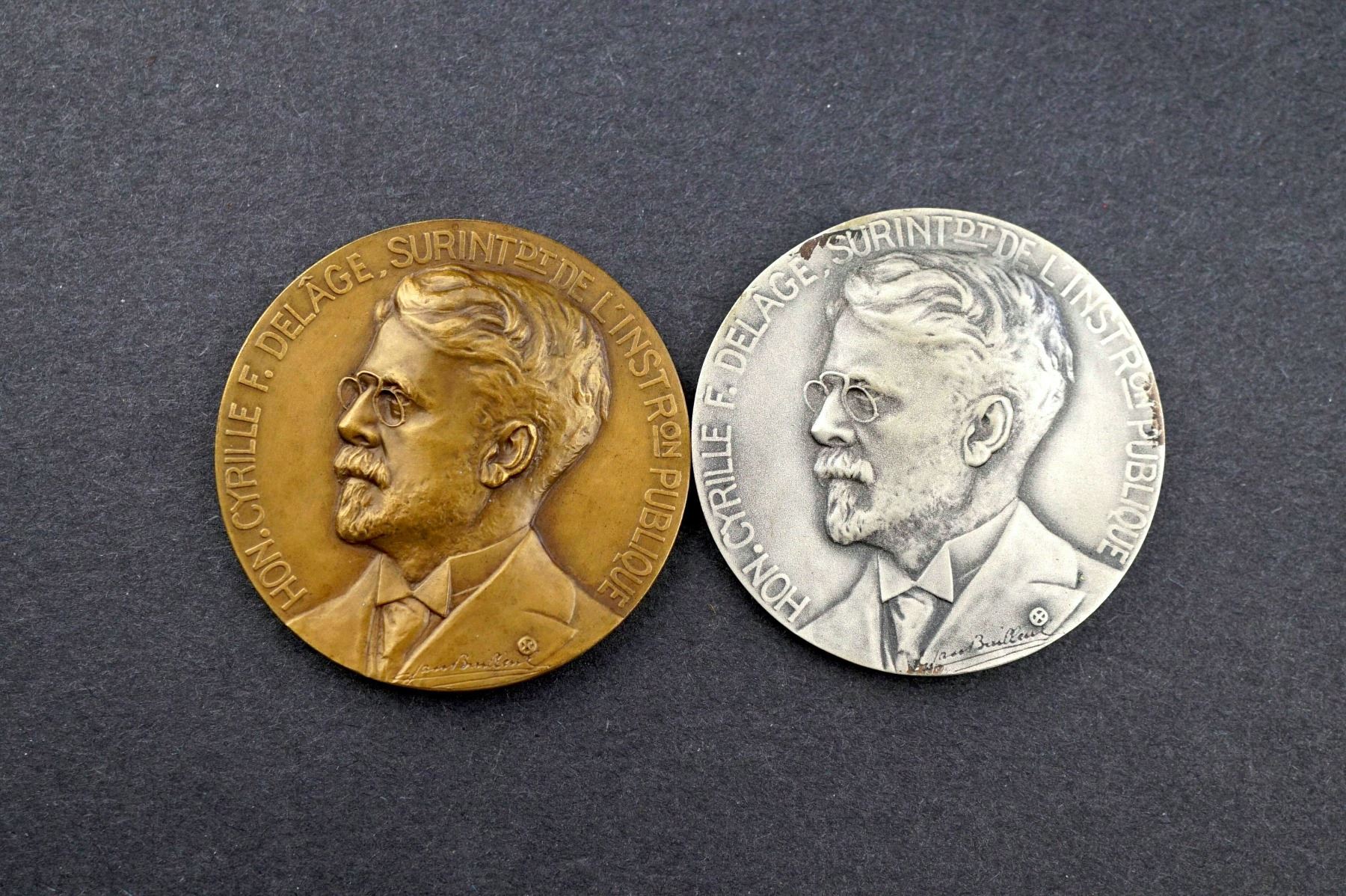 2 Pcs. Cyrille F. Delâge by Jean Bailleul, struck by Birks. FDC AR-50, 65.8 and AE-50, 57.1 grs.