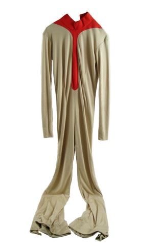 From the hit TV show series Can't Stop the Music (1980), starring The Village People, is Dancer Blane Savage's hero screen worn shiny gold red accented long sleeve dance jumpsuit. There is a Western Costume Company tag on the inside back of the jumpsuit.