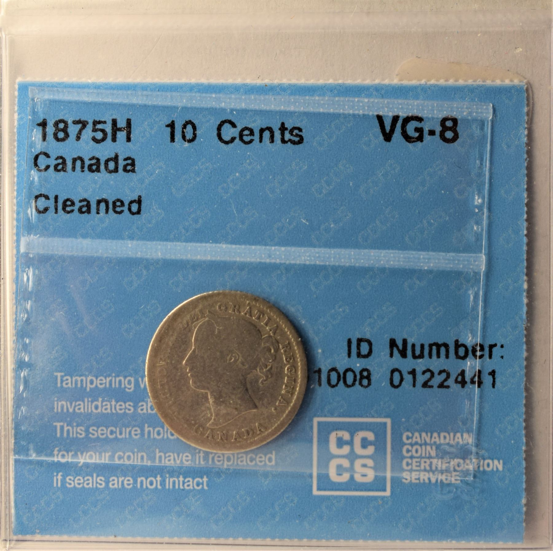 Canada, 0.10c 1875H VG-8 Cleaned CCCS Certified