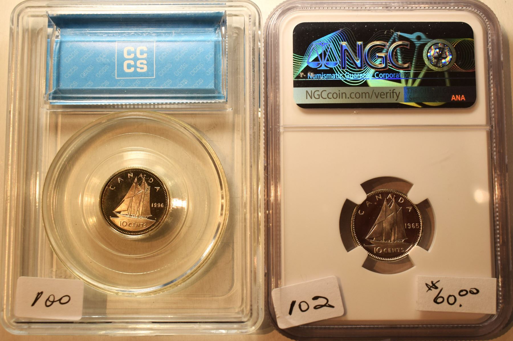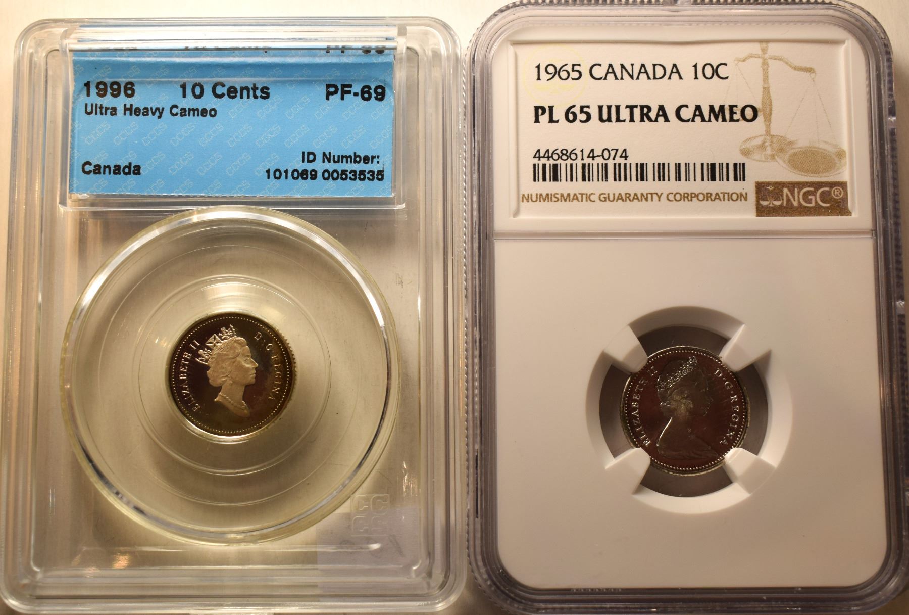 Canada, 0.10c x 2 1965 Ultra Cameo PL-65 Cert. NGC + 1996 Ultra Heavy Cameo PF-69 Cert CCCS (2)