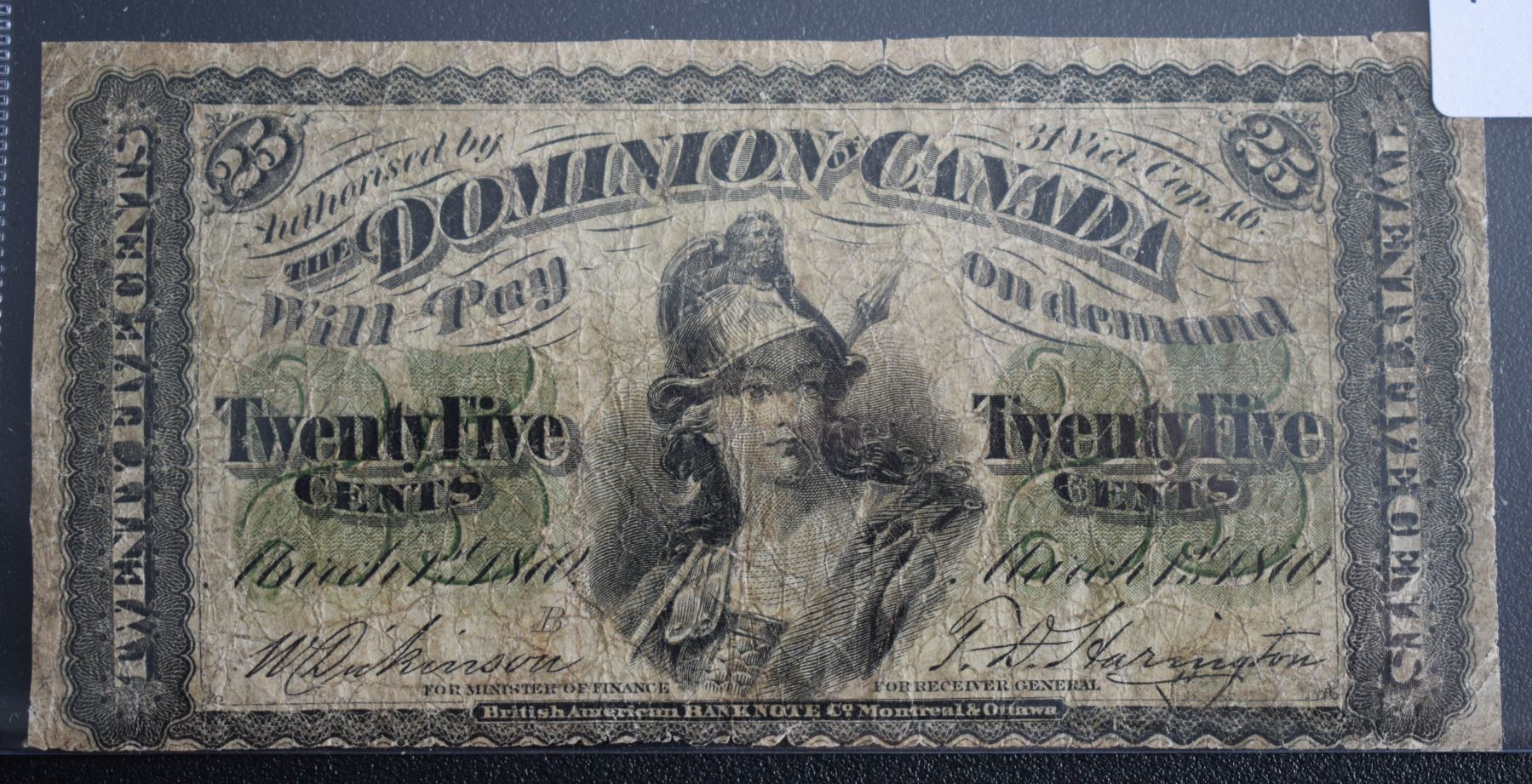 Canada, 0.25c 1870 "Dominion of Canada" DC-1b No Serial # in F-12 Grade.