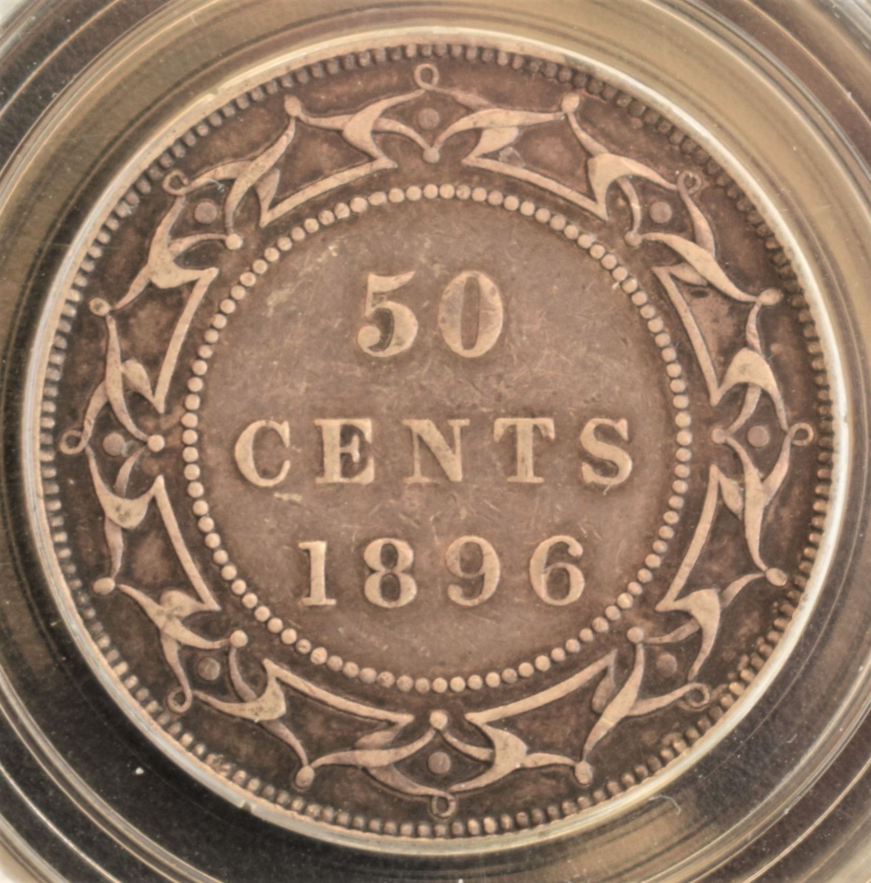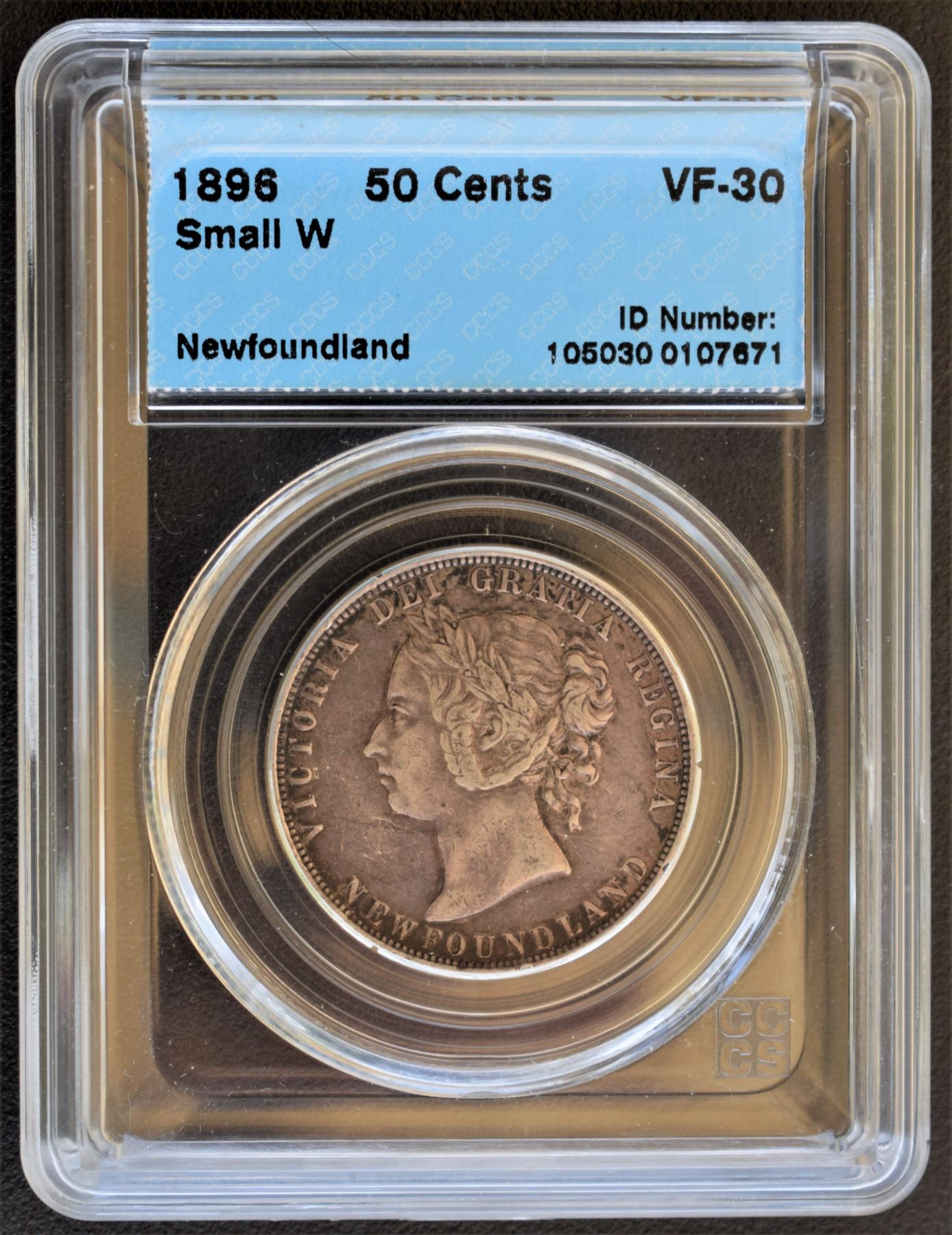 Canada, 0.50c 1896 Newfoundland "Small W" Sterling Silver VF-30 Certified by CCCS
