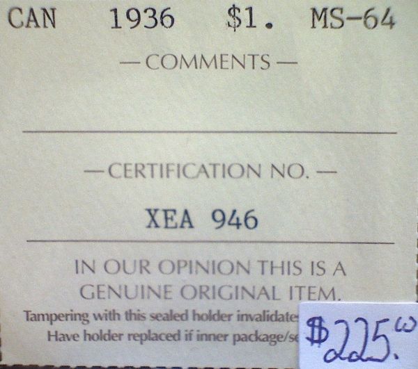 Canada - $1.00 - 1936 - ICCS - MS-64