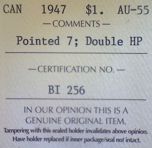 Canada - $1.00 - 1947 - Pointed 7; Double HP - ICCS - AU-55