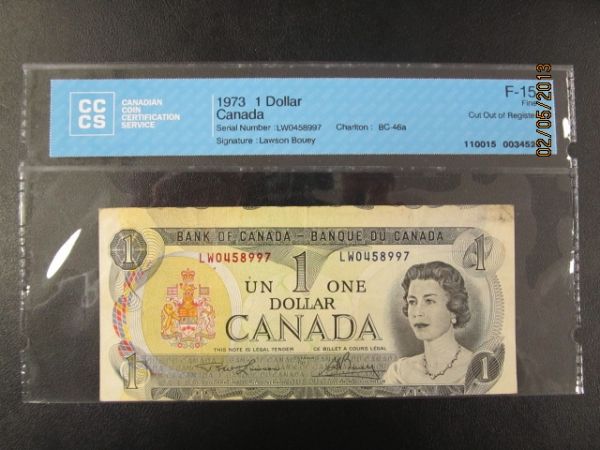 Inv#34525 - Charlton : BC-46a - Signatures : Lawson - Bouey - Cut Out of Register - F-15