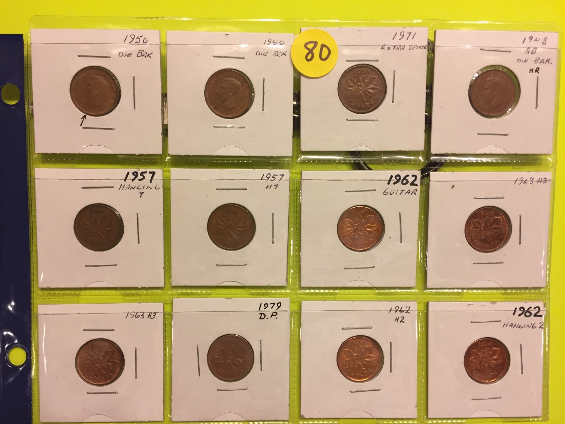 Canada 1¢, 12 coins with assorted varieties & years 1948-1979