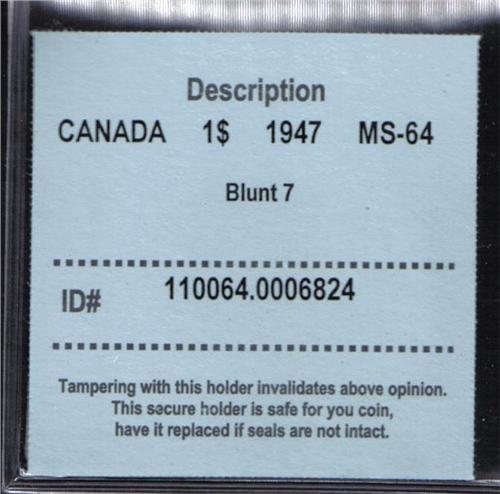 Canada 1$ 1947 MS-64 C.C.C.S. CERT.
