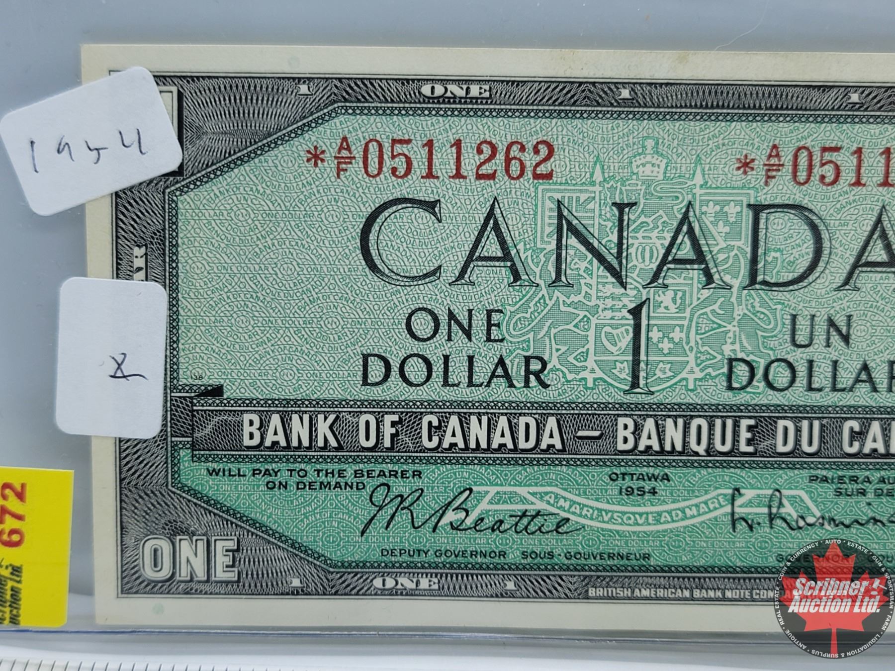 Canada $1 Bill 1954 *Replacement : Beattie/Rasminsky S/N# *AF0511262 (See Pics for Varieties, Conditions, Serial Numbers & Signatures)
